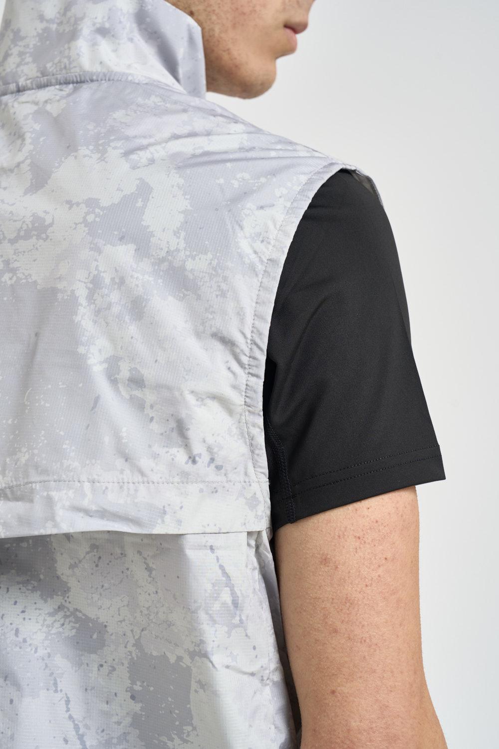 JACK & JONES Gilet uomo sportivo grigio. Modello smanicato dal design tecnico, caratterizzato da vestibilità regolare e collo alto per una maggiore protezione. Realizzato in tessuto leggero e resistente. Chiusura frontale con zip a doppio cursore. Il capo presenta una stampa camouflage all-over tono su tono e loghi CNZ Core Nine-Zero stampati sul petto. Composizione: 100% Poliestere. Il modello è alto 190 cm e indossa la taglia L.