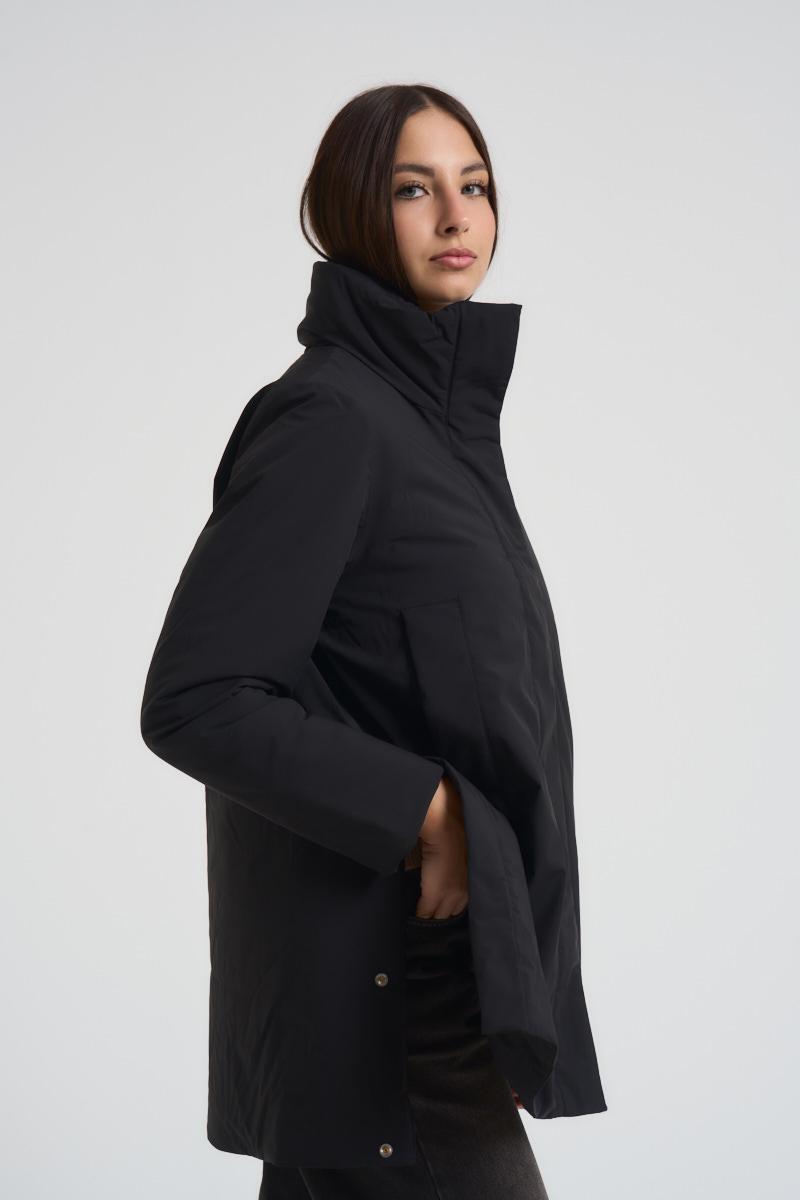 K-WAY Giubbotto donna Marla St Warm lungo nero. Modello con tessuto impermeabile e antivento. Zip a doppio cursore e coperta dalla patta. Imbottito . Regular fit. Composizione: 92% Nylon 8% Elastan. La modella è alta 176 cm e indossa la taglia S.