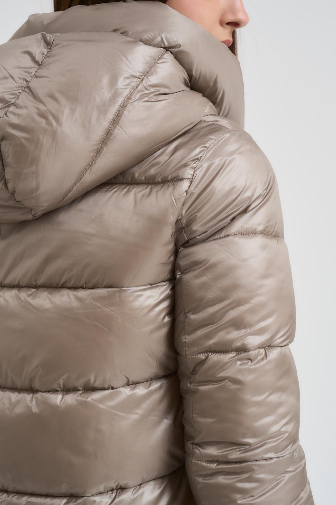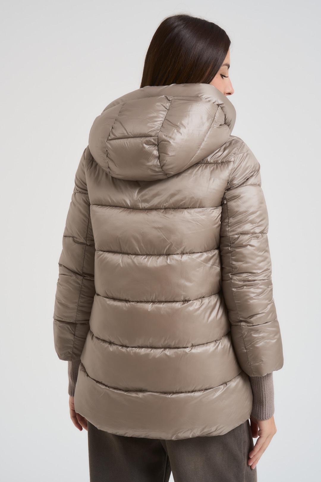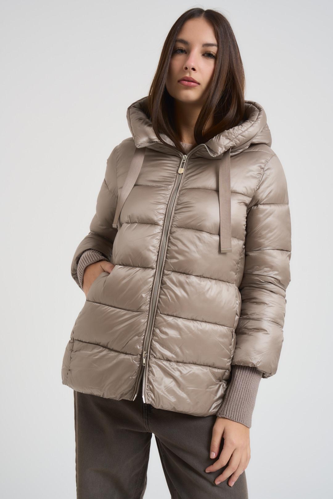 CENSURED Giubbotto donna trapuntato tortora. Modello regular fit. Cappuccio fisso e coulisse. Cuciture orizzontali. Manica lunga. Polsini con lavorazione a costine. Chiusura frontale con cerniera. Due tasche frontali. Composizione: 100% Nylon. La modella è alta 176 cm e indossa la taglia S.