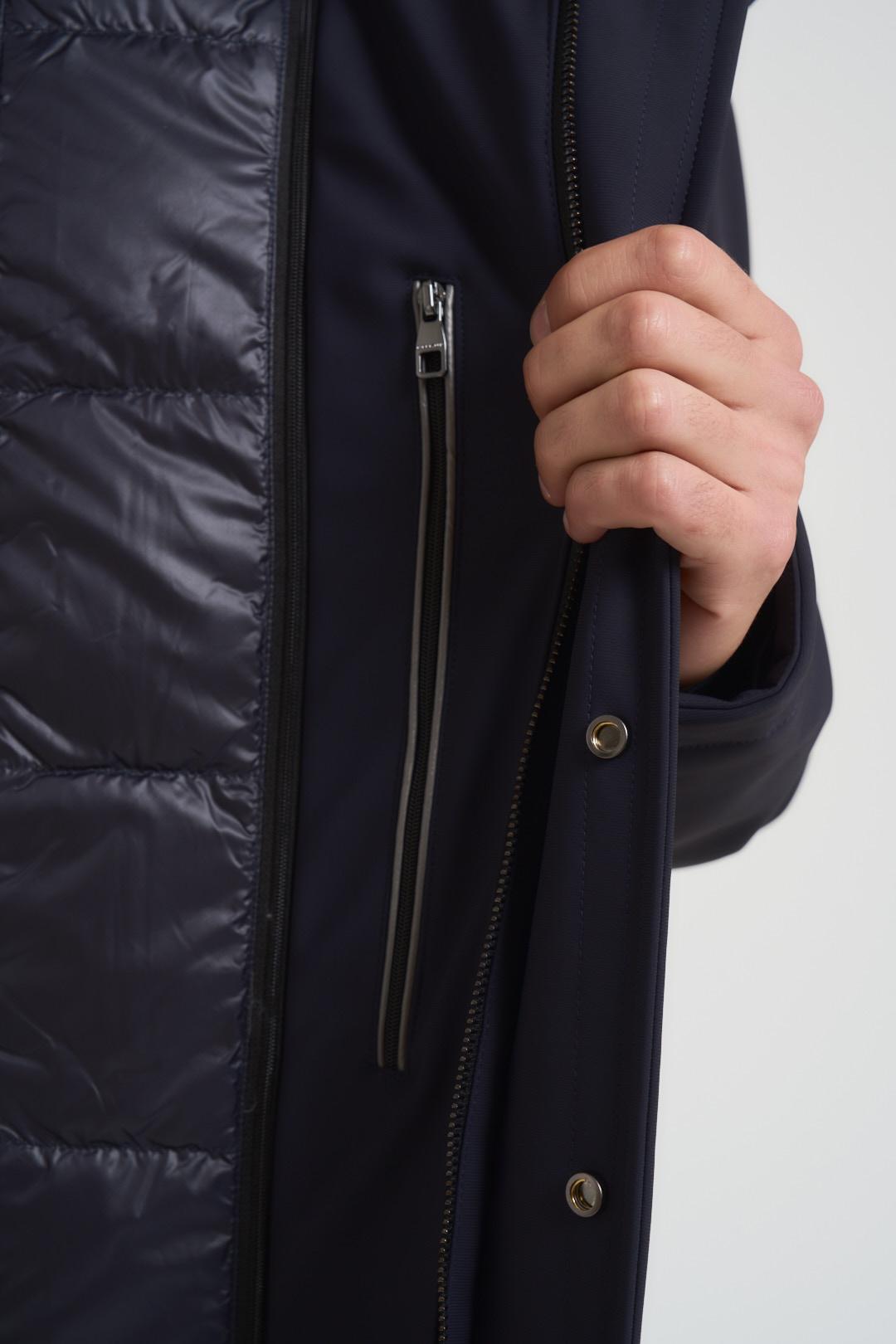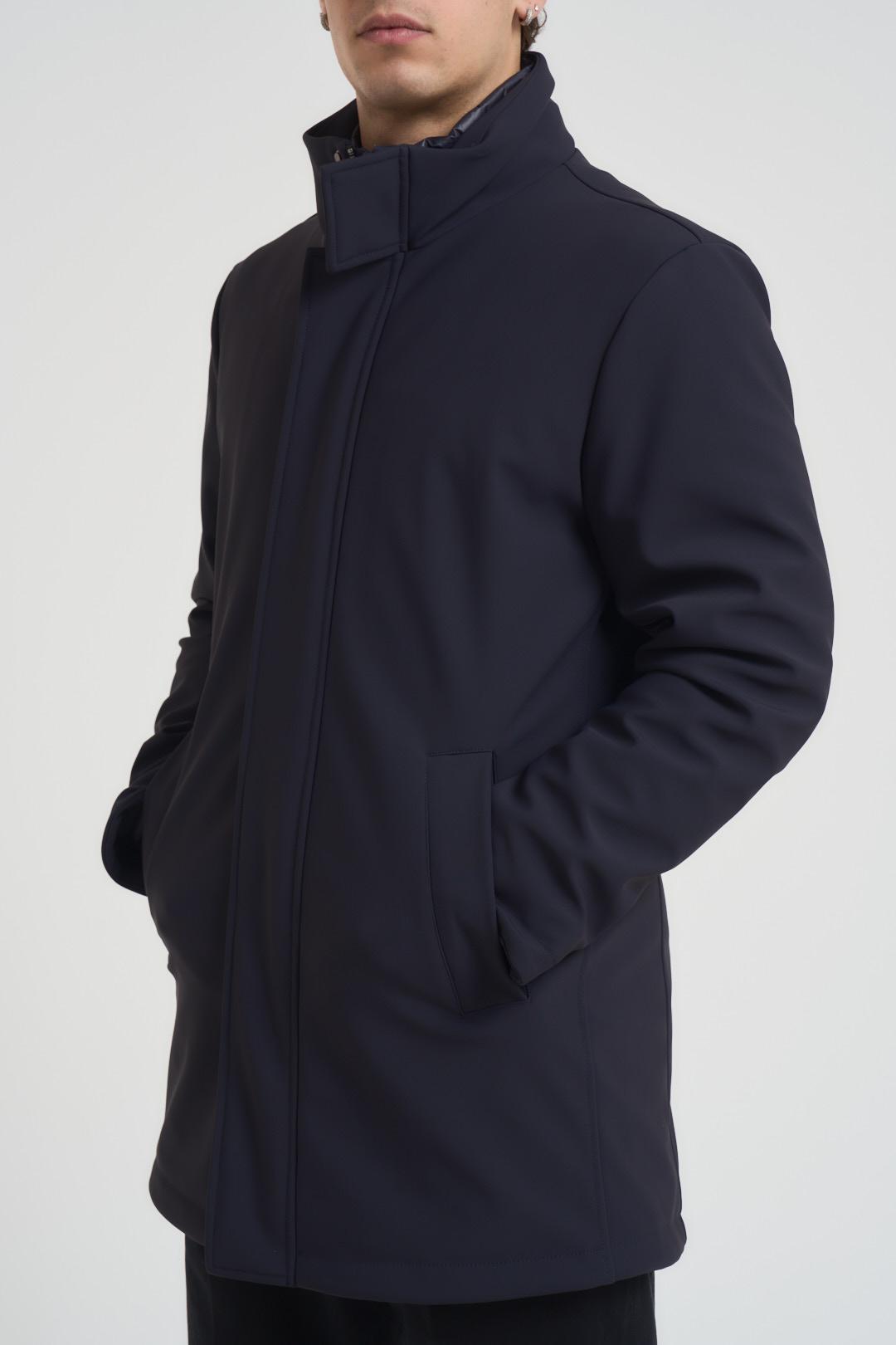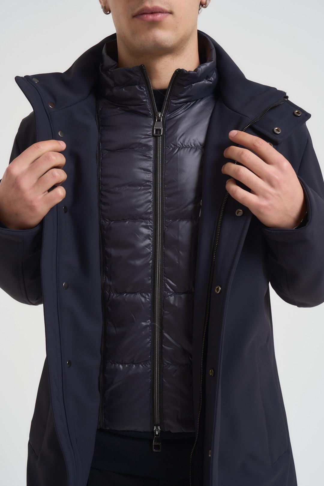 HELMUR Giubbotto uomo collo alto blu notte. Modello con chiusura con zip e bottoni automatici. Manica lunga. Collo alto. Tasche a filo. Pettorina removibile tramite zip. Interno trapuntato. Composizione: 95% poliestere, 5% elastane. Il modello è alto 190 cm e indossa la taglia 50.