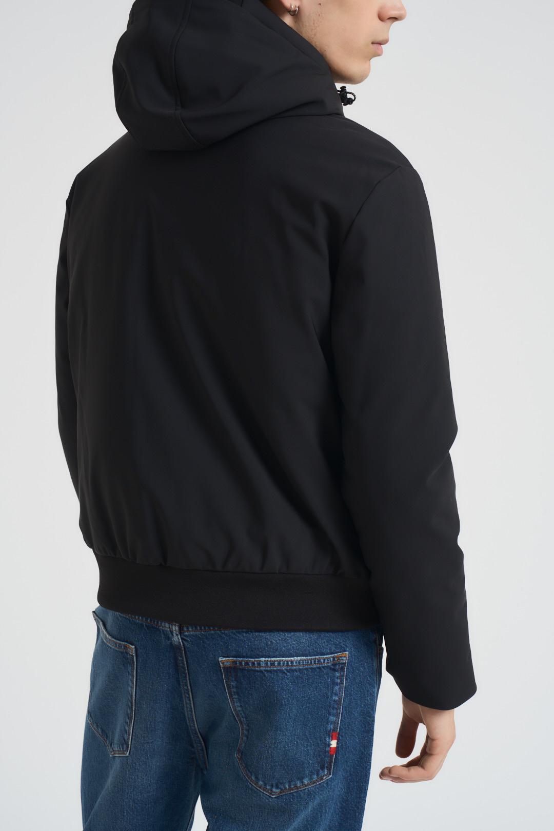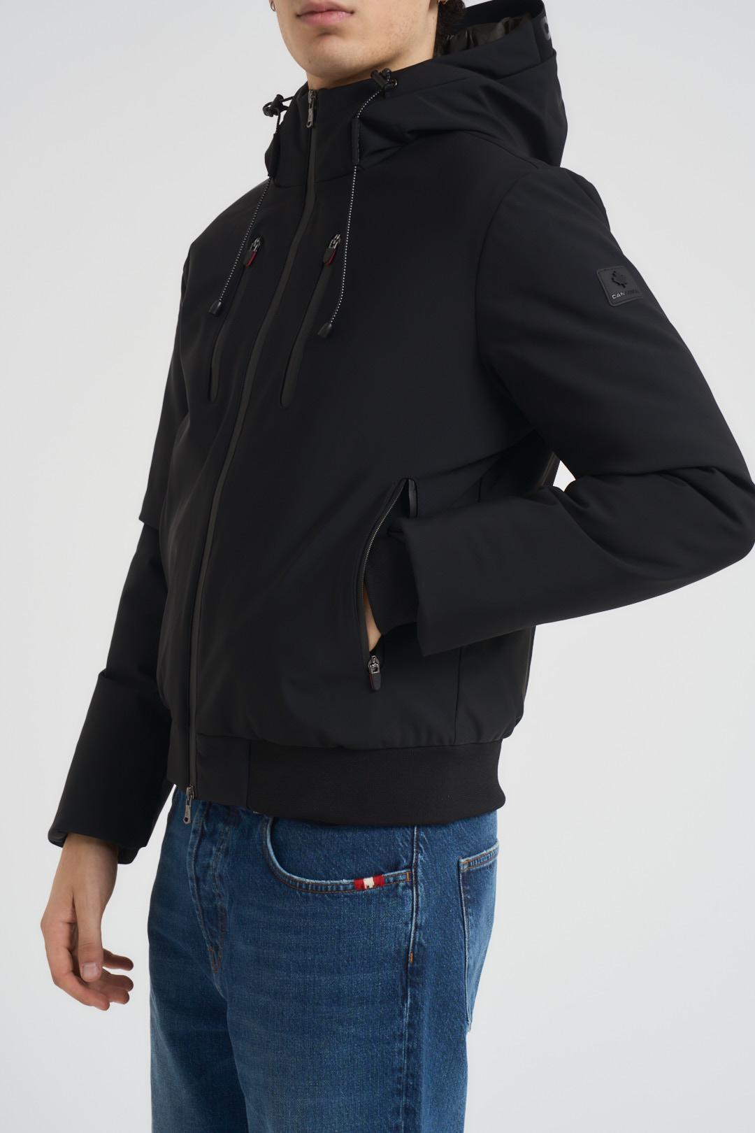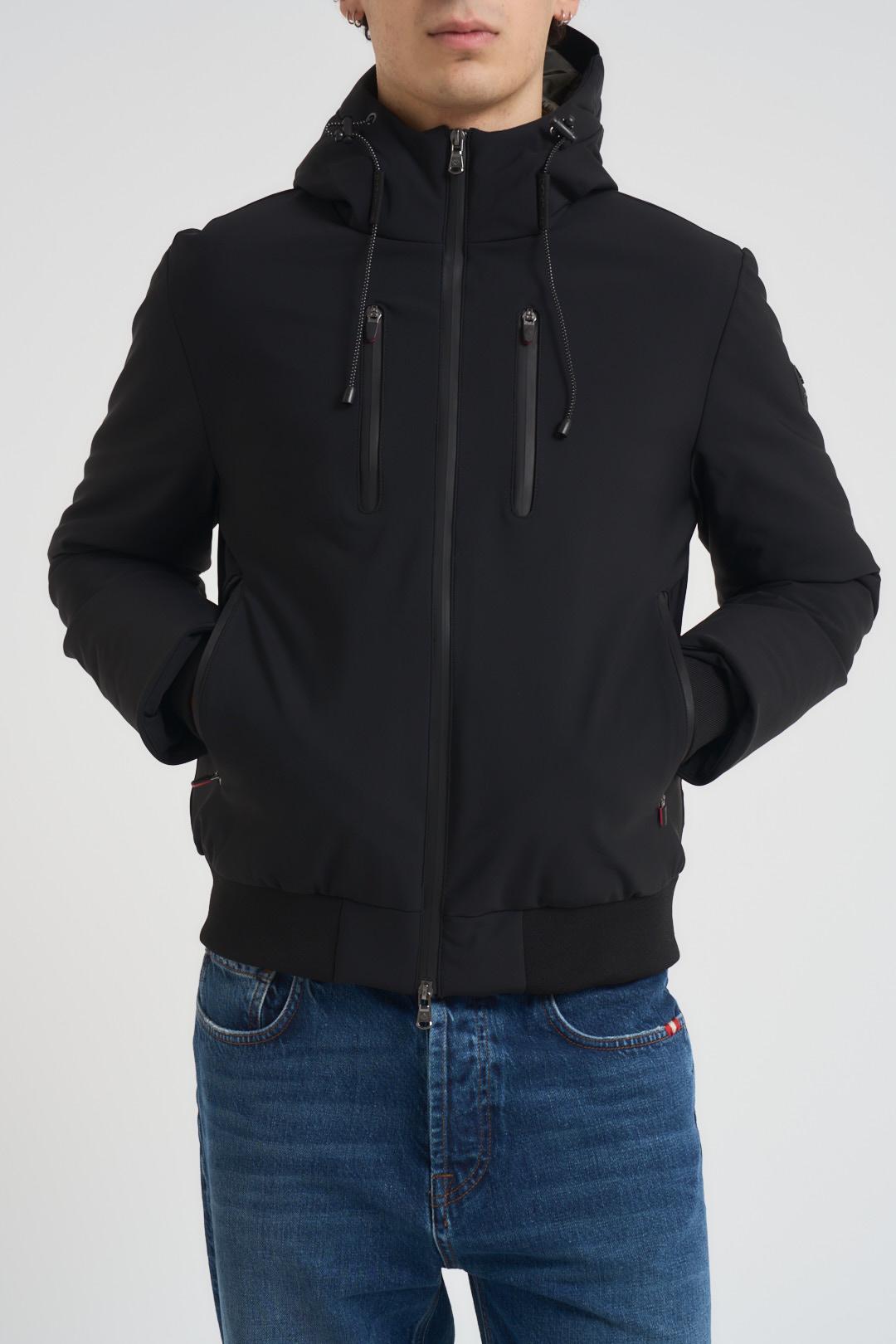 CANADIAN Giubbotto uomo con cappuccio. Giubbotto con tessuto tecnico, tinta unita, collo con cappuccio, maniche lunghe, imbottitura sintetica, chiusura con zip, multitasche. Colore: nero. Il modello è alto 190 cm e indossa la tg L.