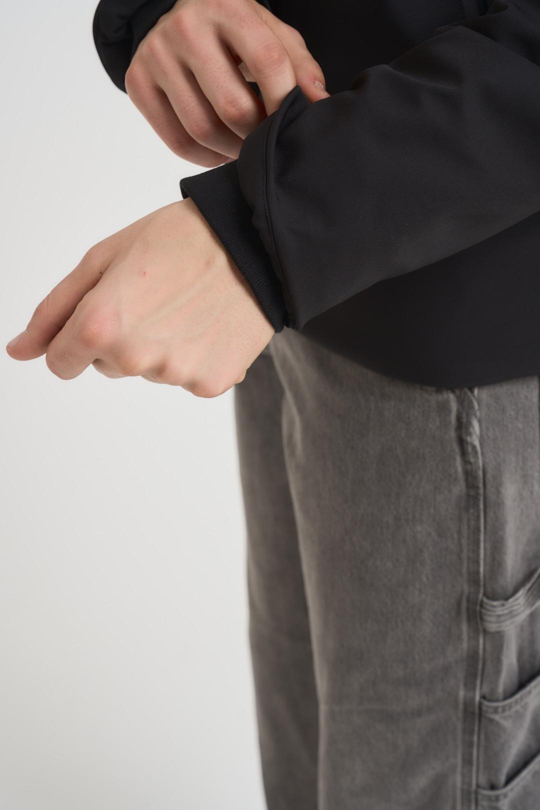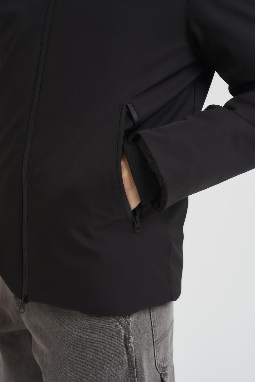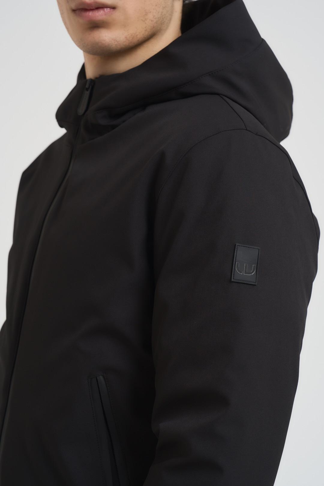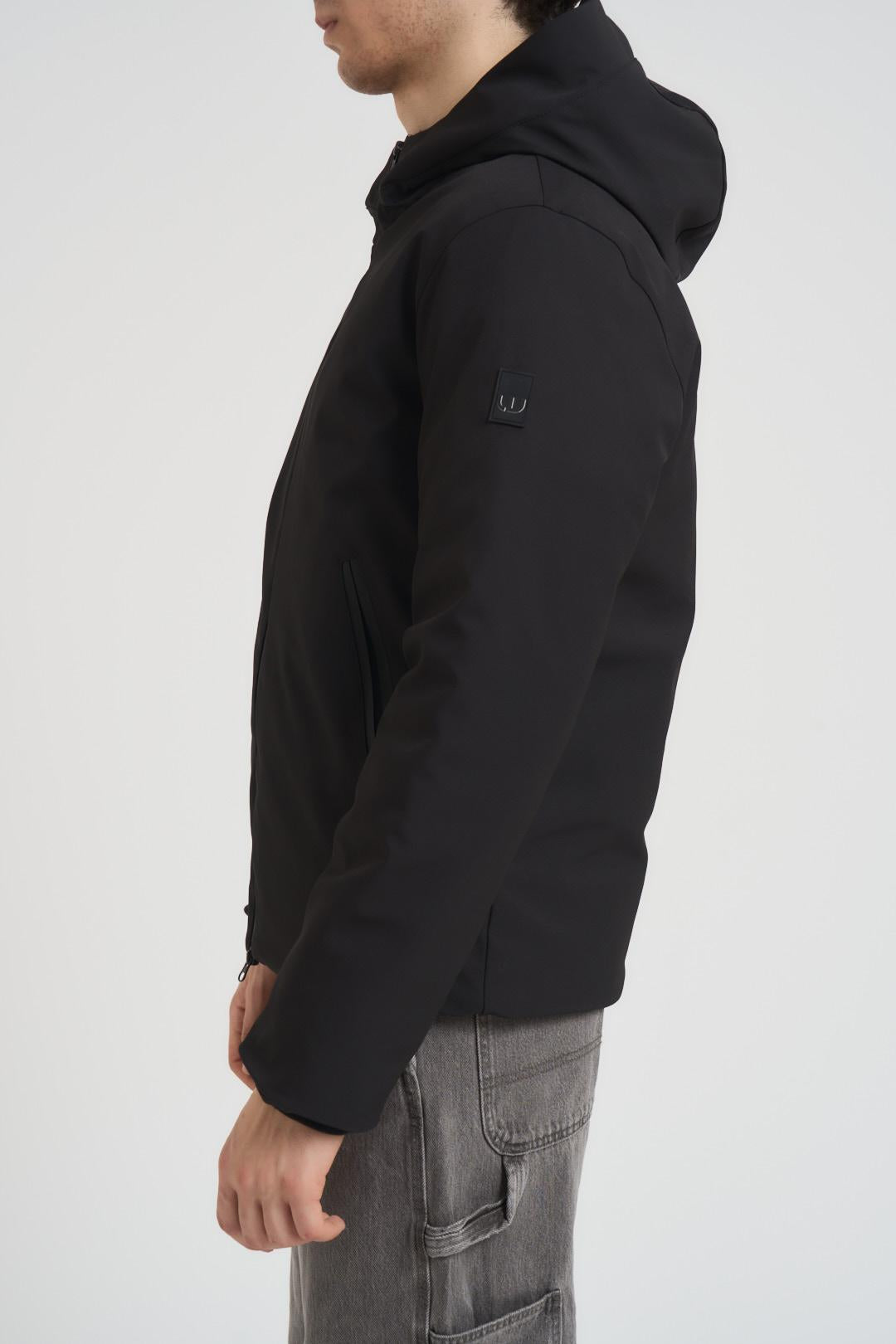 CENSURED Giubbotto uomo con cappuccio nero. Modello corto con fit dritto, due tasche interne ed esterne a filetto con chiusura a zip. Polsini antivento in lycra. Composizione: 88% poliestere 12% elastane.Interna: 100% nylon. Il modello è alto 190cm e indossa la taglia L.