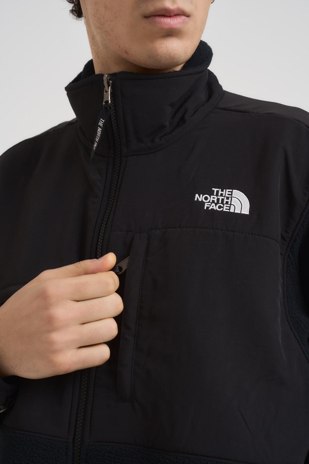 THE NORTH FACE Giubbotto uomo Denali nero. Modello con inserti in tessuto su collo, petto, carré posteriore e parte posteriore inferiore delle maniche. Collo alto, chiusura con cerniera frontale centrale VISLON® a vista con doppio tiretto e patta antivento interna. Cerniere ascellari, due tasche sul petto con cerniera e tasche per le mani. Polsini elasticizzati con linguette con bottoni automatici, coulisse interna. Logo ricamato sulla parte sinistra del petto e dietro la spalla destra. Composizione: 100% poliestere. Il modello è alto 190cm e indossa la taglia M.