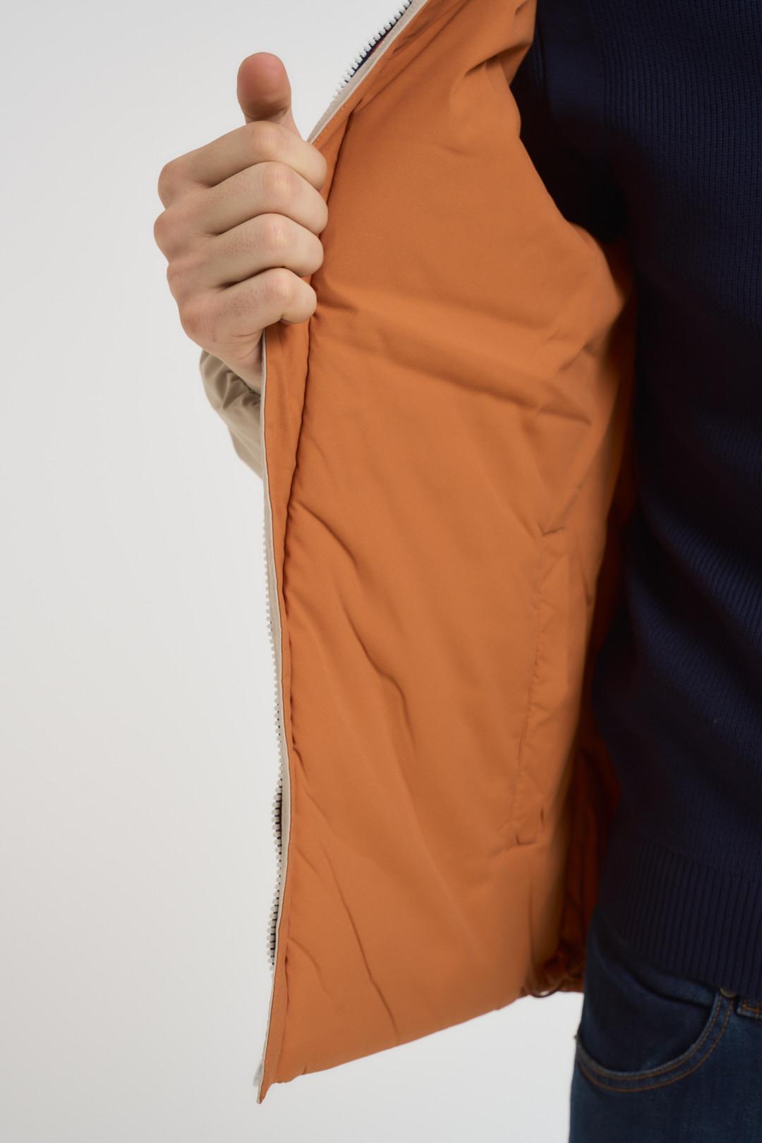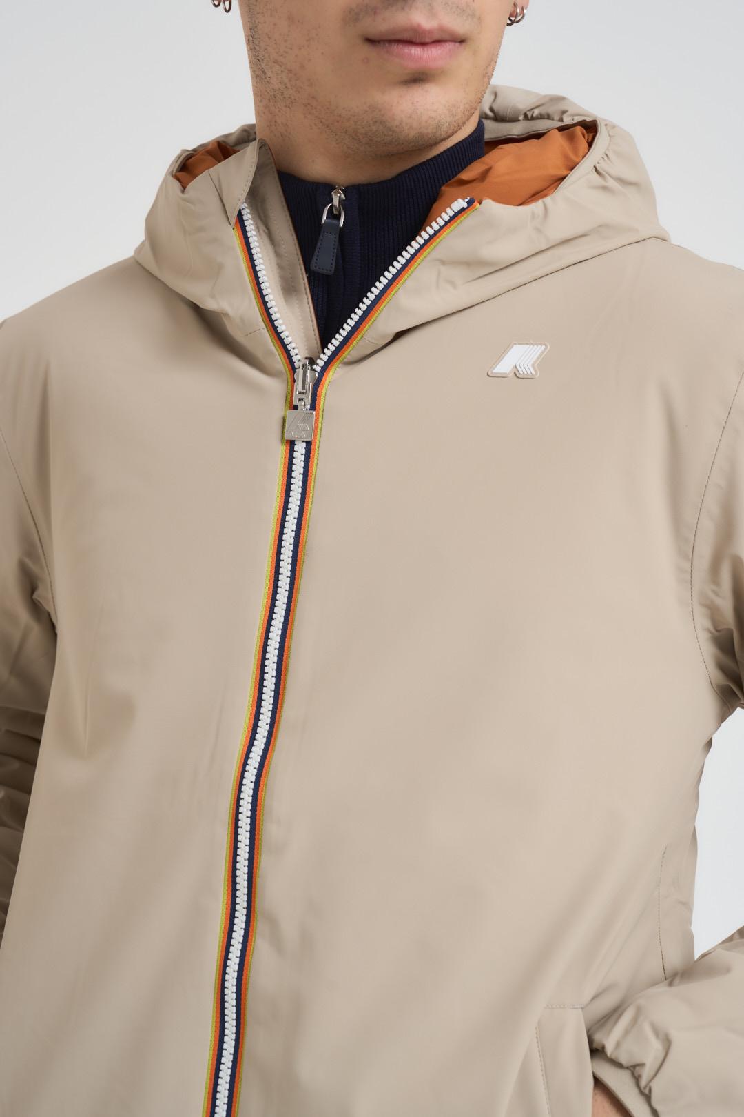 K-WAY Giubbotto uomo double face beige e arancione. Modello impermeabile, idrorepellente, antivento, traspirante, con cappuccio regolabile da coulisse. Reversibile con interno verde. Cuciture termonastrate. Chiusura con zip e polsini con elastico. Due tasche con zip. Imbottitura: 100% Poliestere. Esterno: 8% Elastan 92% Nylon. Il modello è alto 190cm e indossa la taglia L.