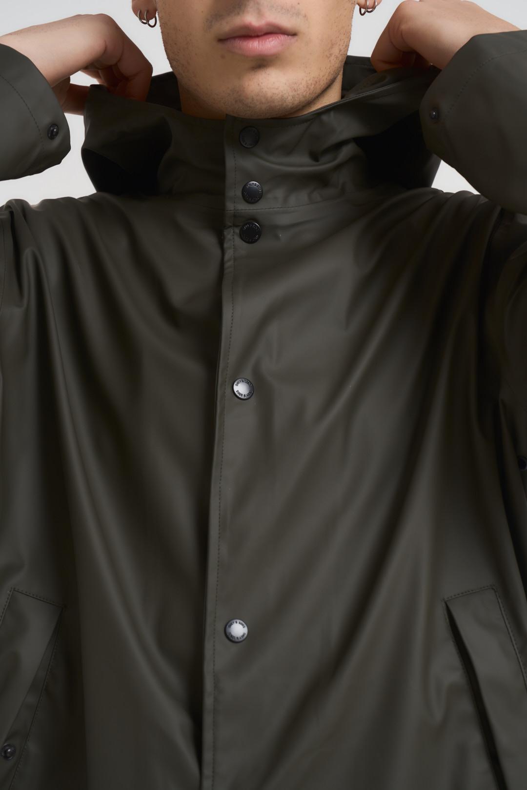 ONLY & SONS NOOS Giubbotto uomo impermeabile verde militare. Modello con cappuccio, chiusura frontale con bottoni a pressione, tasche laterali con chiusura bottone a pressione. Composizione: 100% Poliestere. Il modello è alto 190cm e indossa la taglia L.