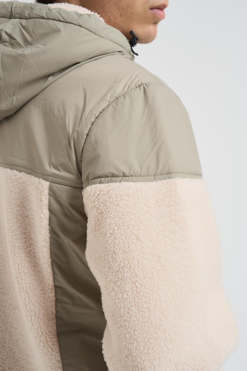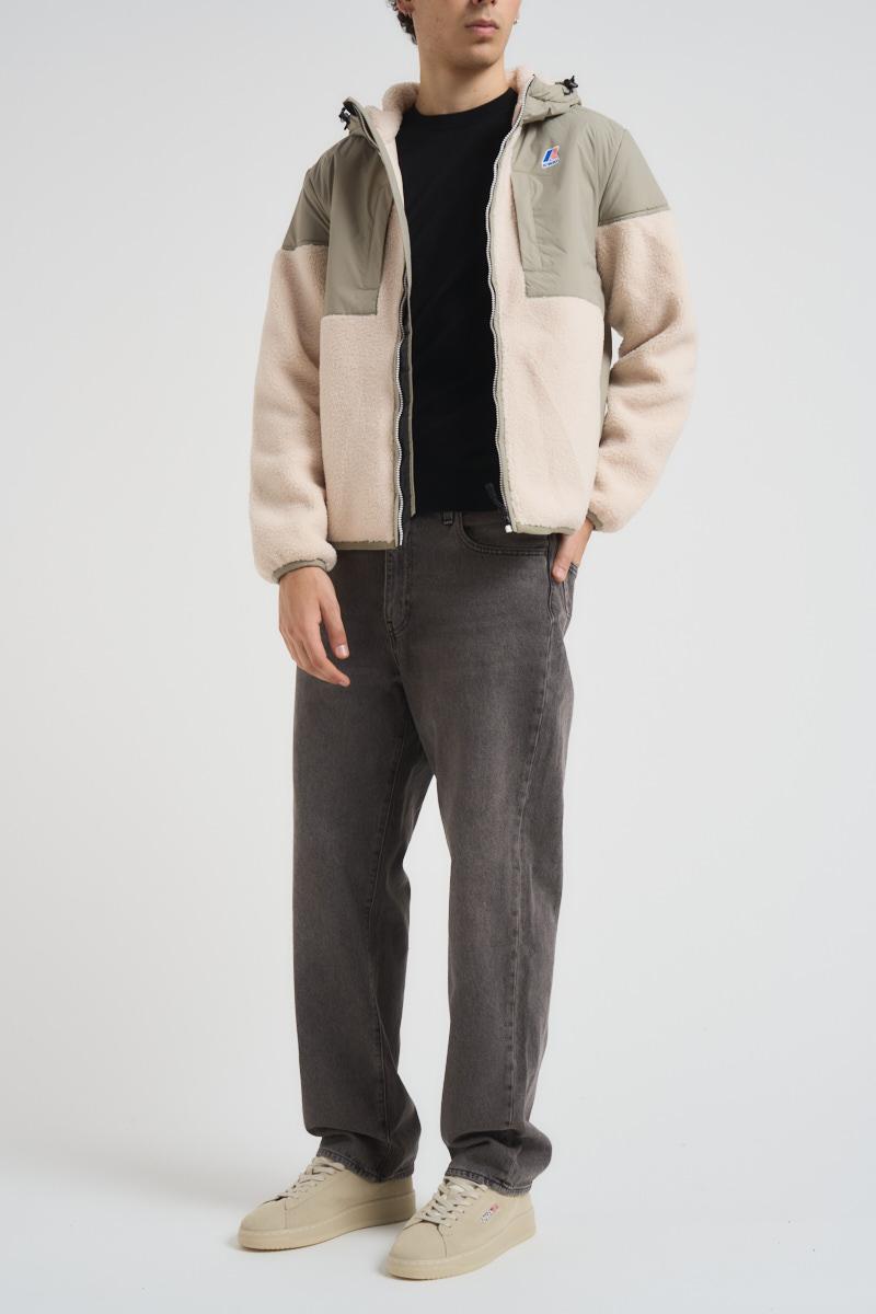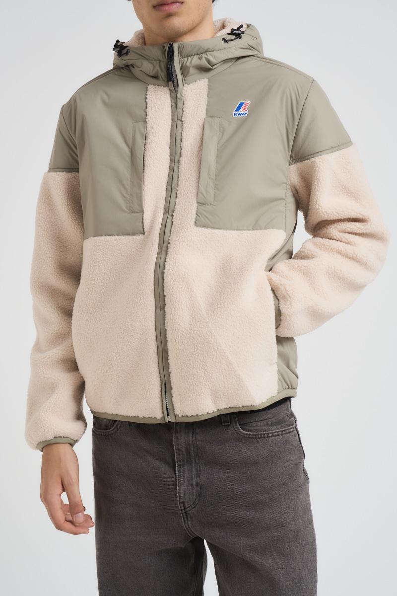 K-WAY Giubbotto uomo Samson 4.0 beige. Modello corto con tessuto effetto sherpa e inserti in nylon impermeabile e antivento. Imbottitura in PrimaLoft® e cappuccio regolabile con coulisse. Chiusura con zip, due tasche sul petto e due laterali con cerniera. Bordo inferiore regolabile con coulisse e logo stampato colorato sul petto a sinistra. Composizione: 100% Poliestere. Il modello è alto 190 cm e indossa la taglia L.