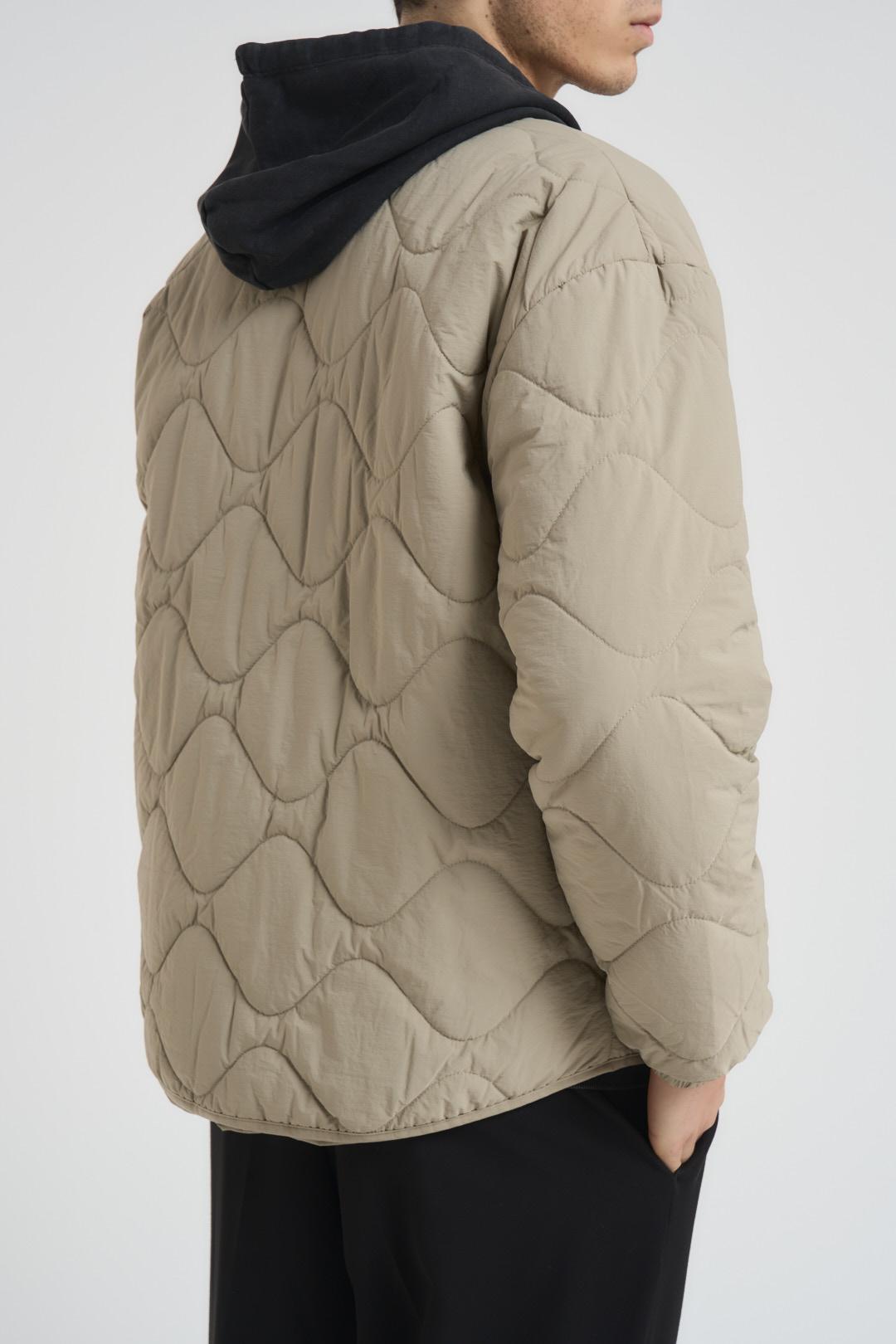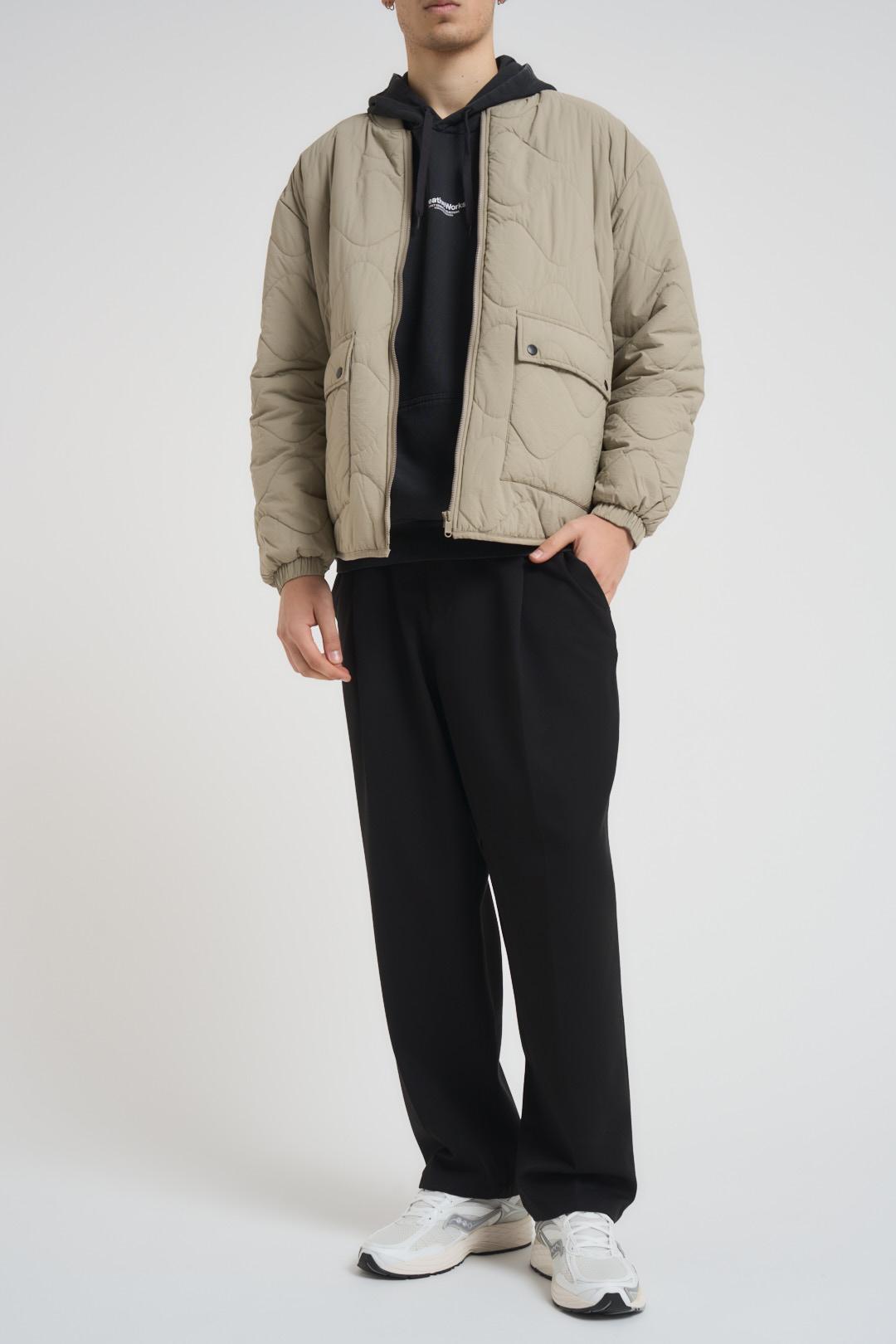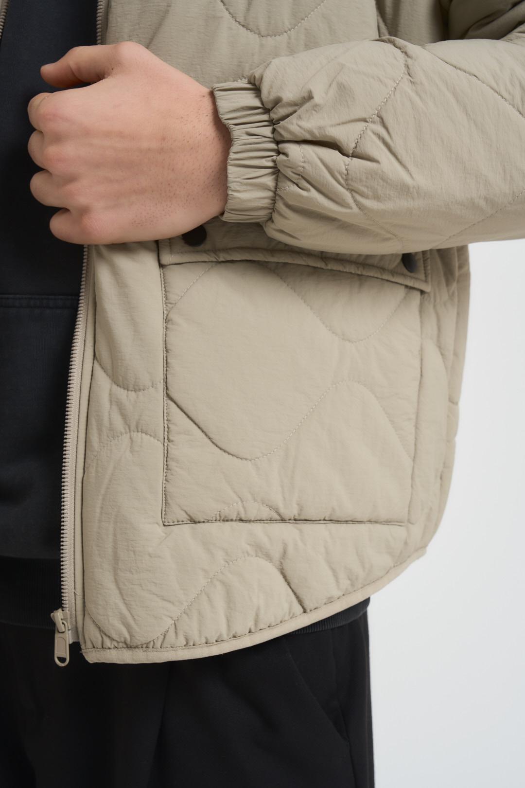 ONLY&SONS Giubbotto uomo trapuntato grigio chiaro. Modello girocollo con dettaglio a costine elastico, maniche lunghe con polsini a punto smock. Chiusura a zip. Due tasche frontali a patta e bottoncini. Composizione: 100% nylon. Il modello è alto 190cm e indossa la taglia L.