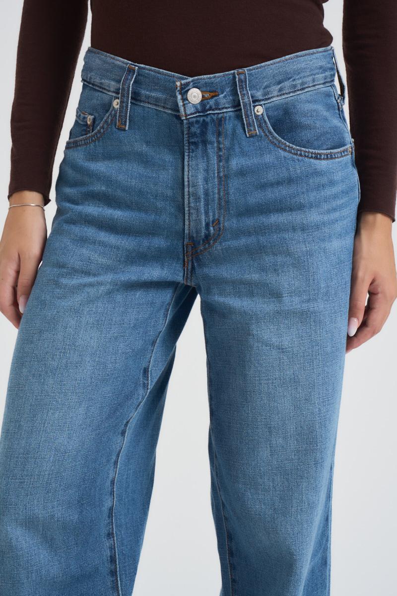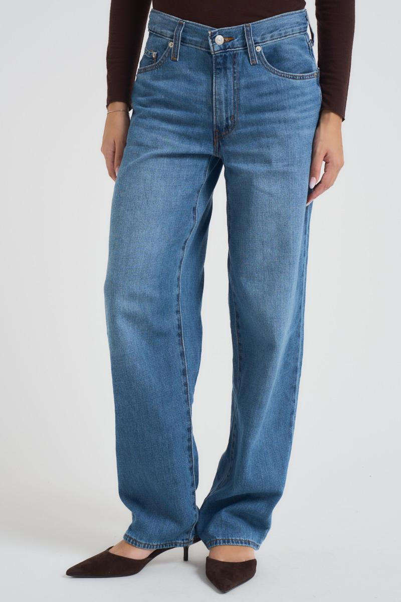 LEVI'S Jeans donna Baggy Dad in denim medio. Taglio morbido e ampio. Vita media con gamba diritta. Chiusura con bottone e zip. Composizione: 75% cotone, 25% lyocell. La modella è alta 172cm e indossa la taglia 25.