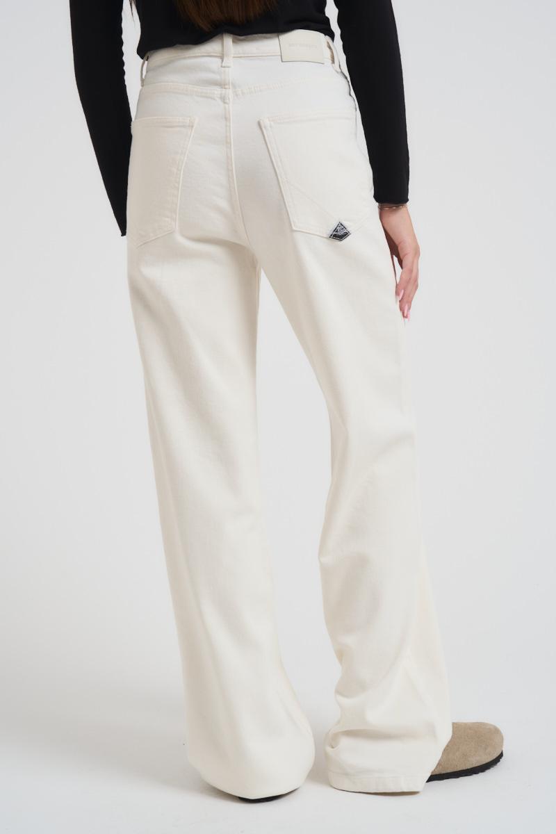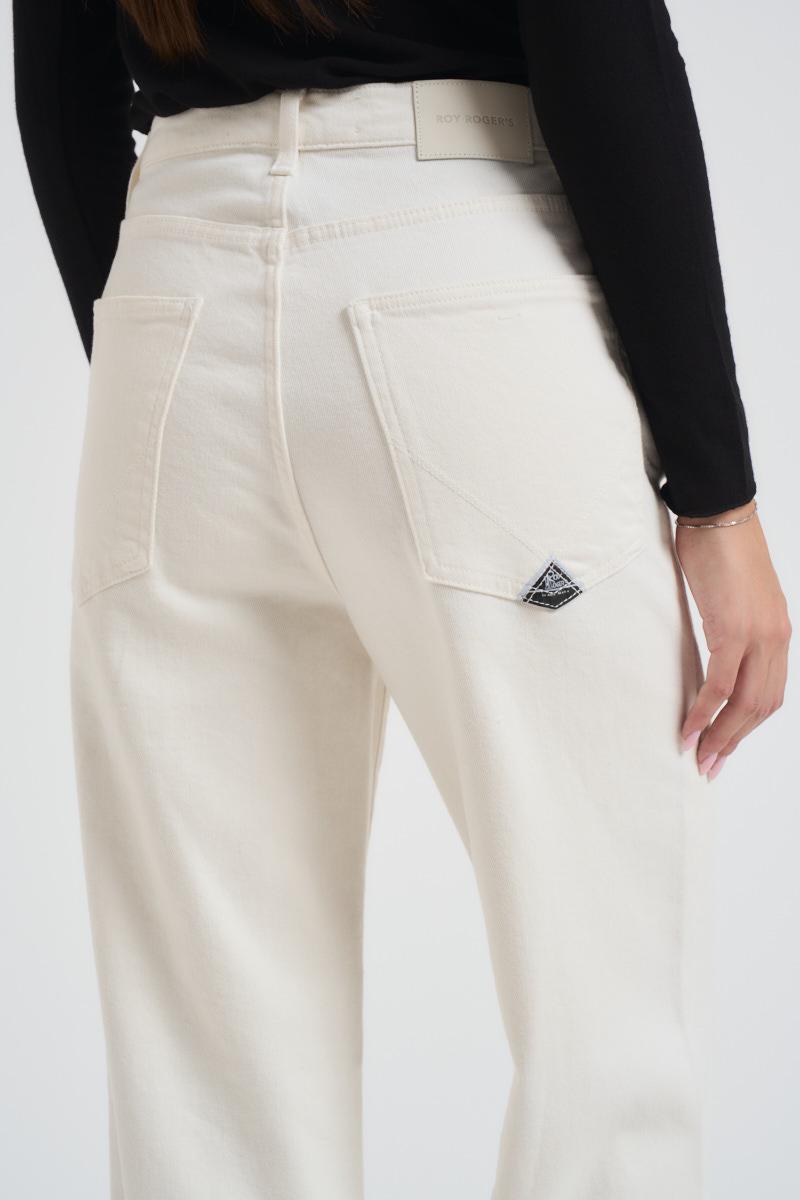 ROY ROGER'S Jeans donna Marta Black Story bianco. Modello a cinque tasche. Chiusura con zip e bottone. Composizione: 100% cotone. La modella è alta 172 cm e indossa la taglia 25.
