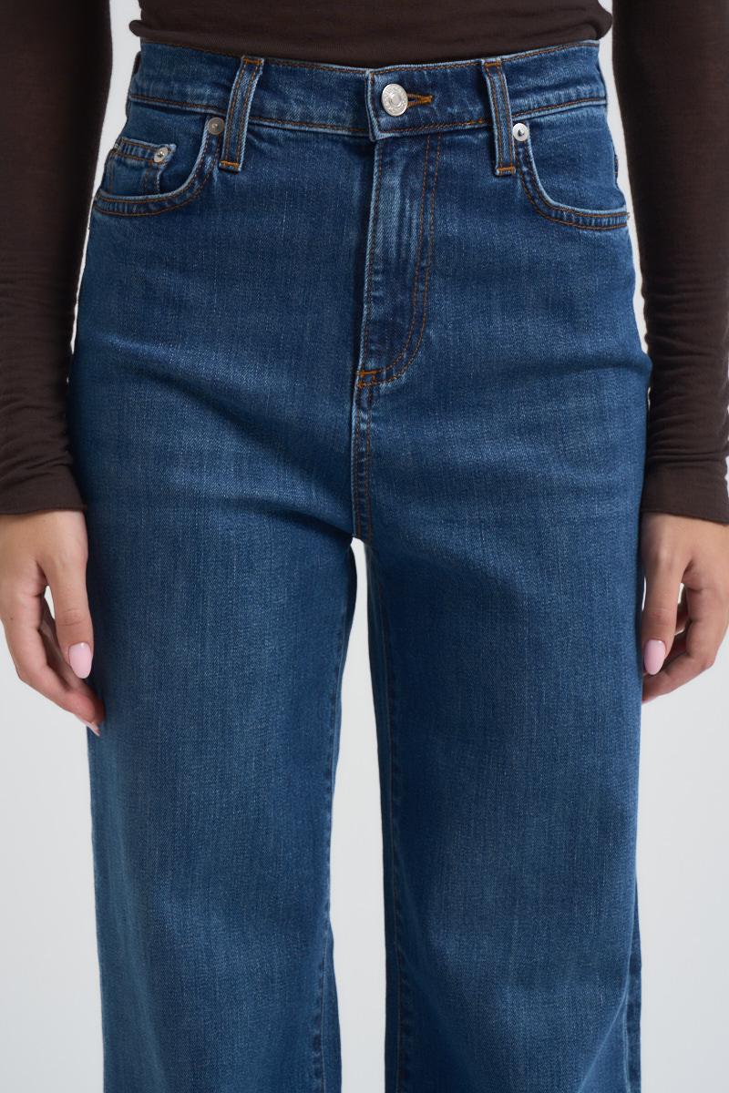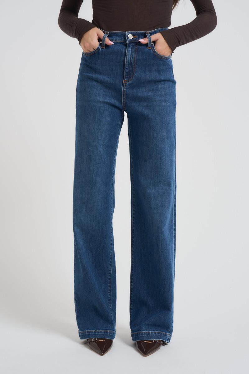 ROY ROGER'S Jeans donna Marta in denim medio. Vita alta con passanti. Chiusura con bottone logato e zip. Due tasche sul fronte e due tasche sul retro con etichetta Roy Roger's applicata. Flare fit. Composizione: 70% cotone 30% lyocell. La modella è alta 172 cm e indossa la taglia 25.