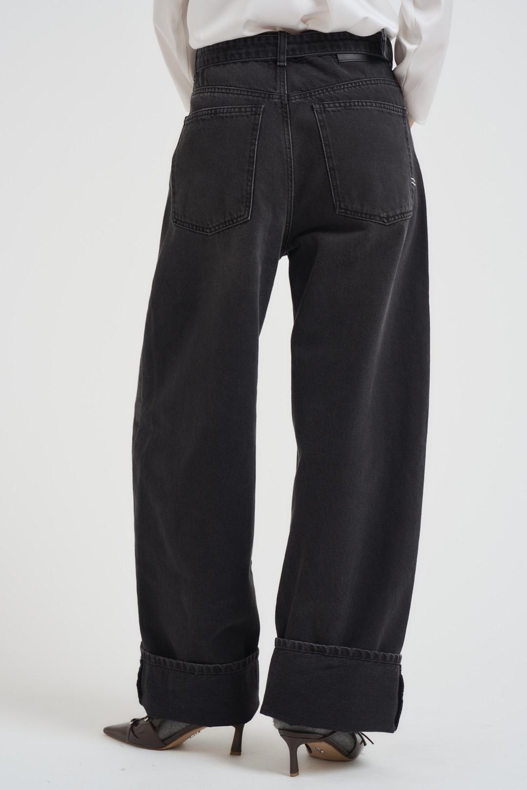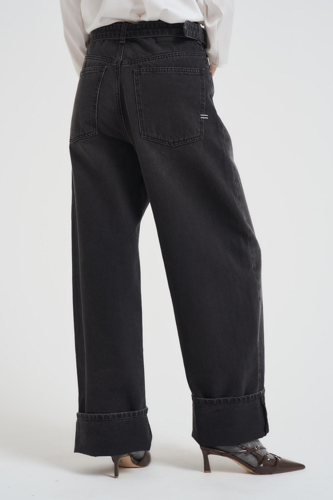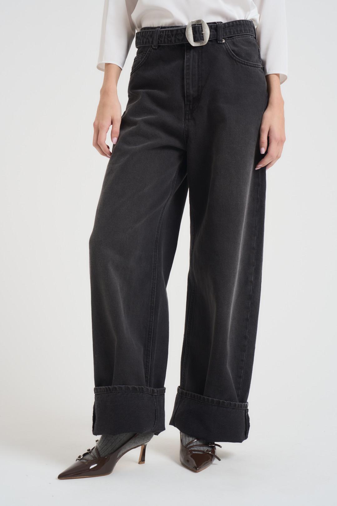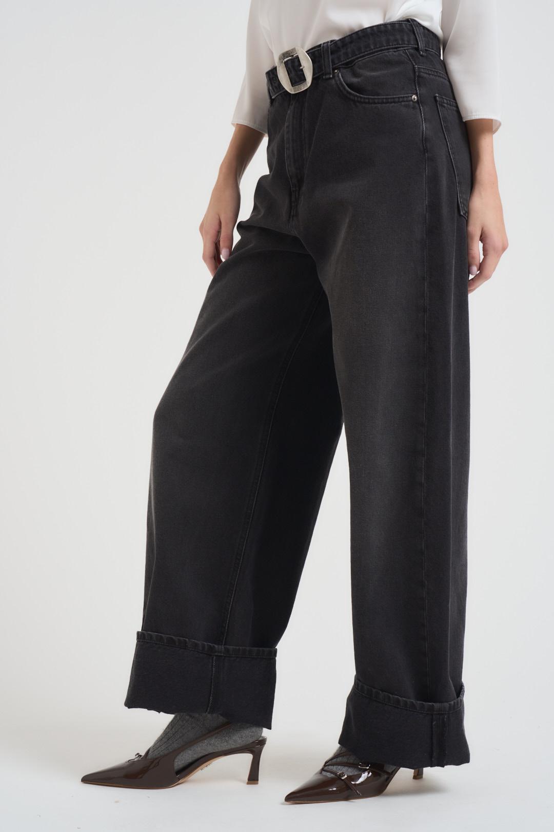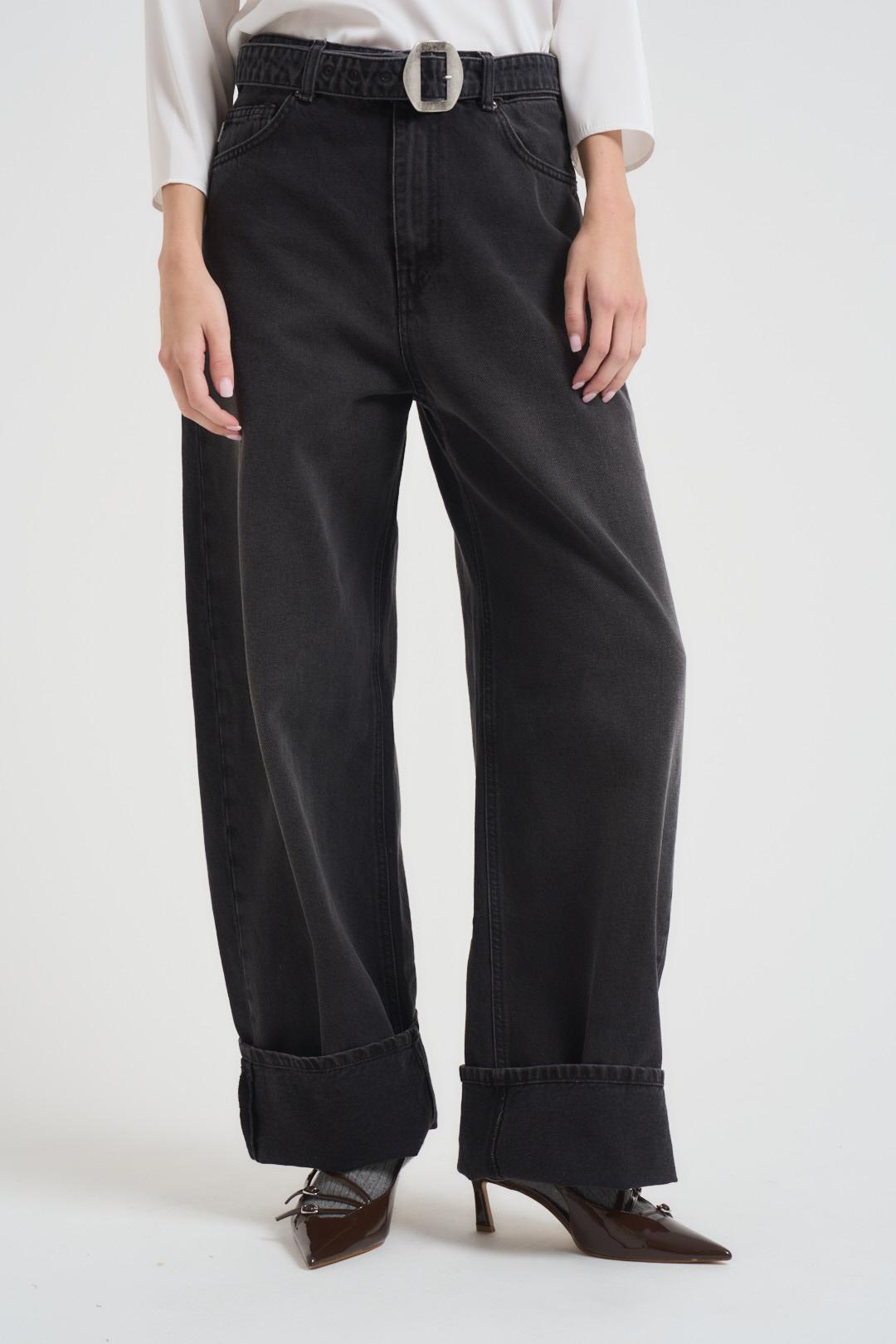 VICOLO Jeans donna nero ampio. Modello a cinque tasche. Chisura con zip e bottone. Passanti per cintura. Cintura con fibbia. Composizione: 100% cotone. La modella è alta 175 cm e indossa la taglia S.