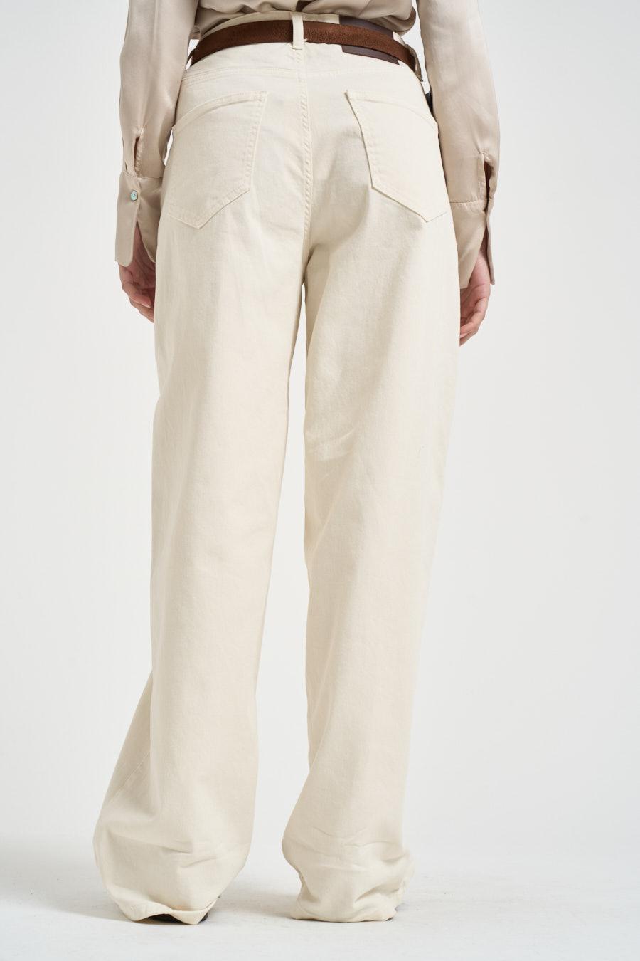 SOUVENIR CLUBBING Jeans donna wide leg burro. Modello a gamba ampia con vita alta e chiusura frontale con zip e bottone. Design a cinque tasche con passanti in vita per cintura. Dettaglio logo a forma di stella metallica applicato sul davanti. Composizione: 100% cotone. La modella è alta 172cm e indossa la taglia XS.