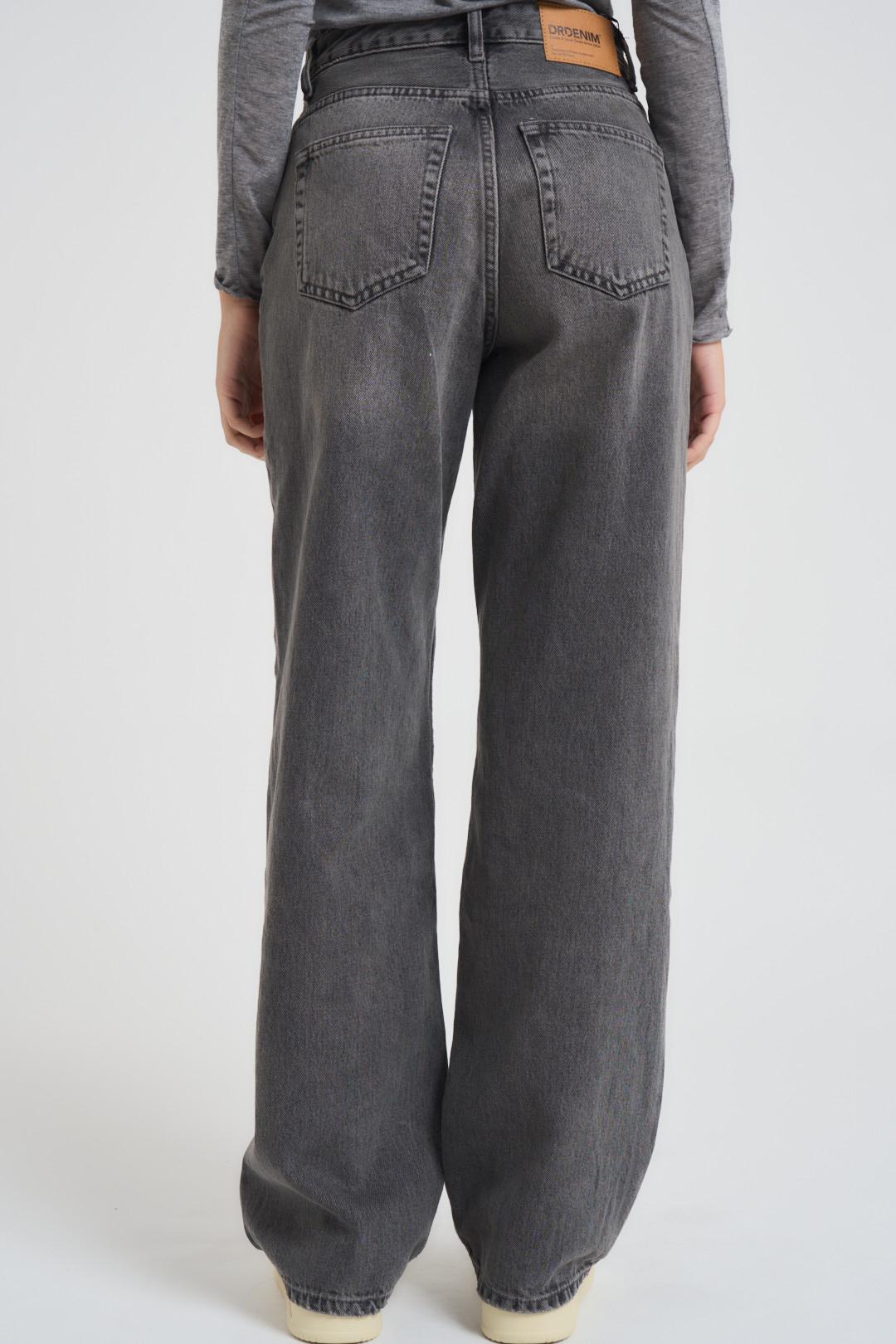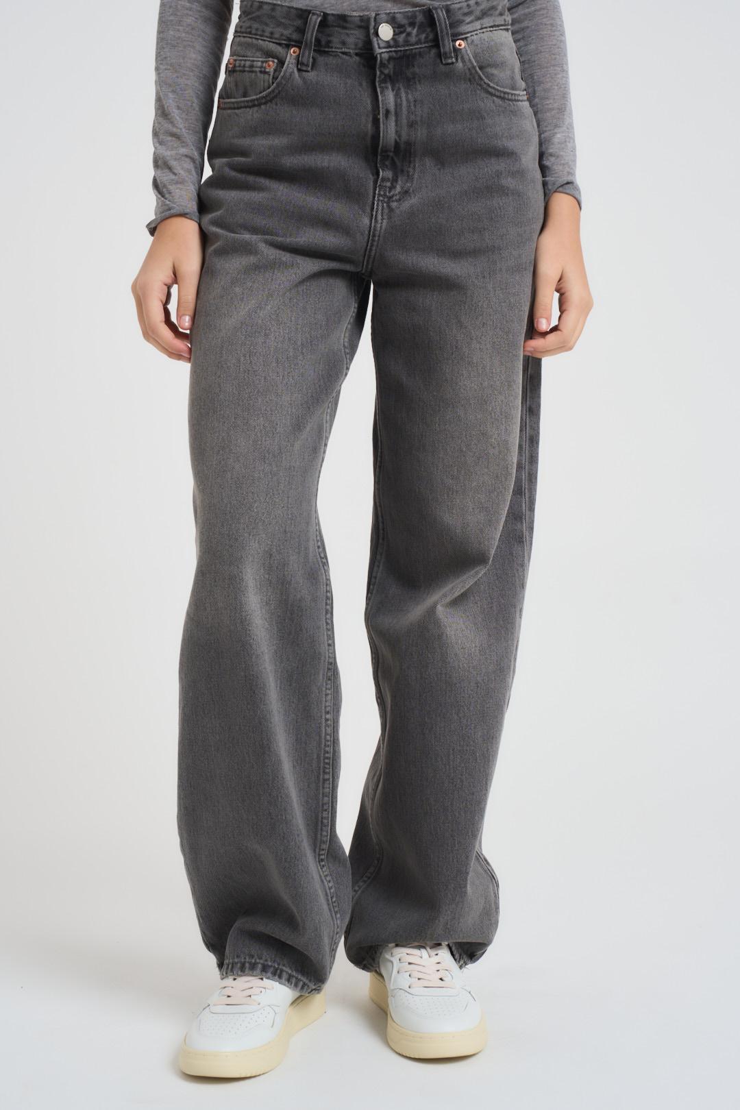 DRDENIM Jeans donna wide leg grigio. Modello largo con chiusura con zip e bottone. Cinque tasche. Composizione: 100% cotone. La modella è alta 172 cm e indossa la taglia 25.