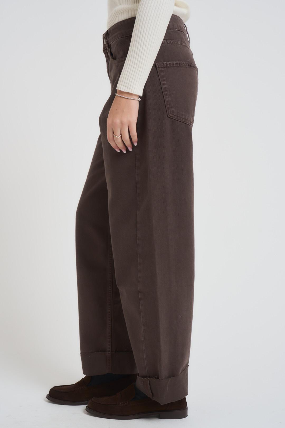 INCLOTH Jeans donna wide leg moro. Modello con chiusura frontale con zip e bottone. Quattro tasche. Passanti in vita. Composizione: 100% cotone. La modella è alta 172 cm e indossa la taglia S.