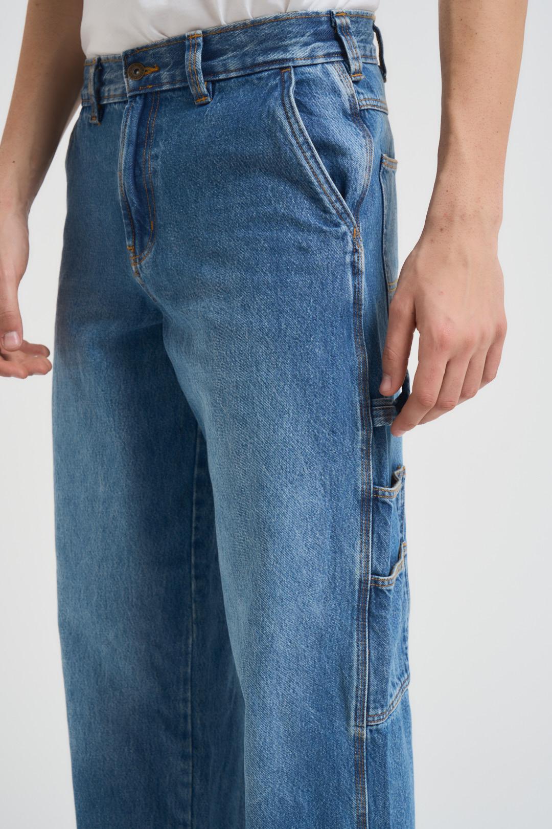 DICKIES Jeans uomo carpenter in denim blu. Modello loose fit. Chiusura con zip e bottone. Sei tasche in totale comprese due sulla gamba, Passanti in vita. Etichetta logo posta posteriormente. Composizione: 100% Cotone. Il modello è alto 190 cm e indossa la taglia 33.