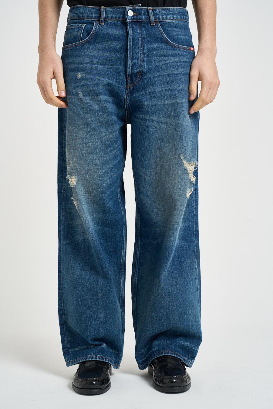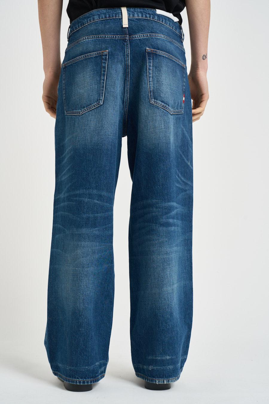 AMISH Jeans uomo gamba dritta blu. Modello a gamba ampia con vita regolare e passanti per cintura, caratterizzato da una vestibilità confortevole. Realizzato in denim resistente, presenta chiusura frontale con bottone e zip. Dotato di tasche laterali e tasche posteriori applicate. Composizione: 100% Cotone. Il modello è alto 190 cm e indossa la taglia 32.