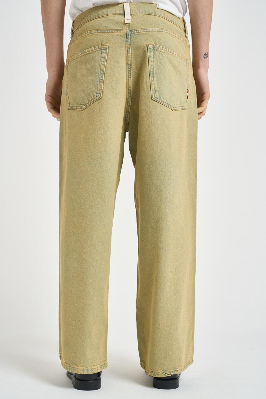 AMISH Jeans uomo gamba dritta verde. Modello a gamba ampia con vita regolare e passanti per cintura, caratterizzato da una vestibilità confortevole. Realizzato in denim resistente, presenta chiusura frontale con bottone e zip. Dotato di tasche laterali e tasche posteriori applicate. Composizione: 100% Cotone. Il modello è alto 190 cm e indossa la taglia 32.