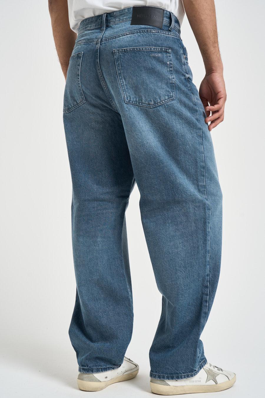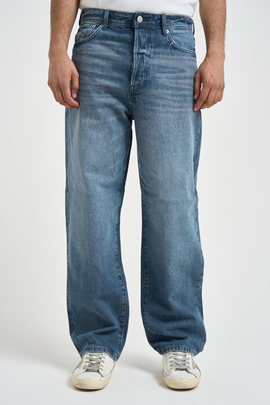 ONLY & SONS Jeans uomo loose fit denim medio. Modello con chiusura frontale con zip e bottone. Cinque tasche. Passanti in vita. Composizione: 100% Cotone. Il modello è alto 183 cm e indossa la tg 33.