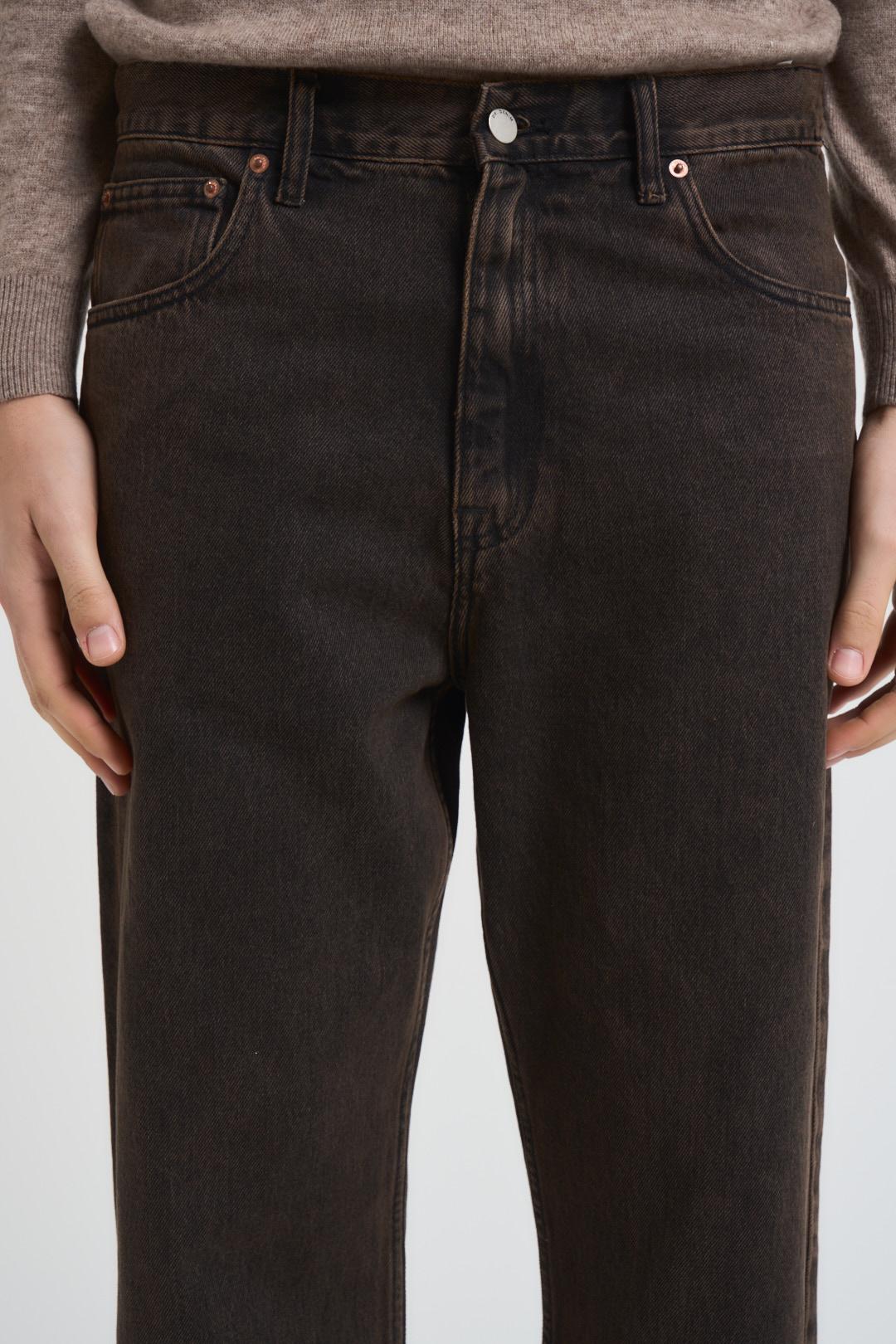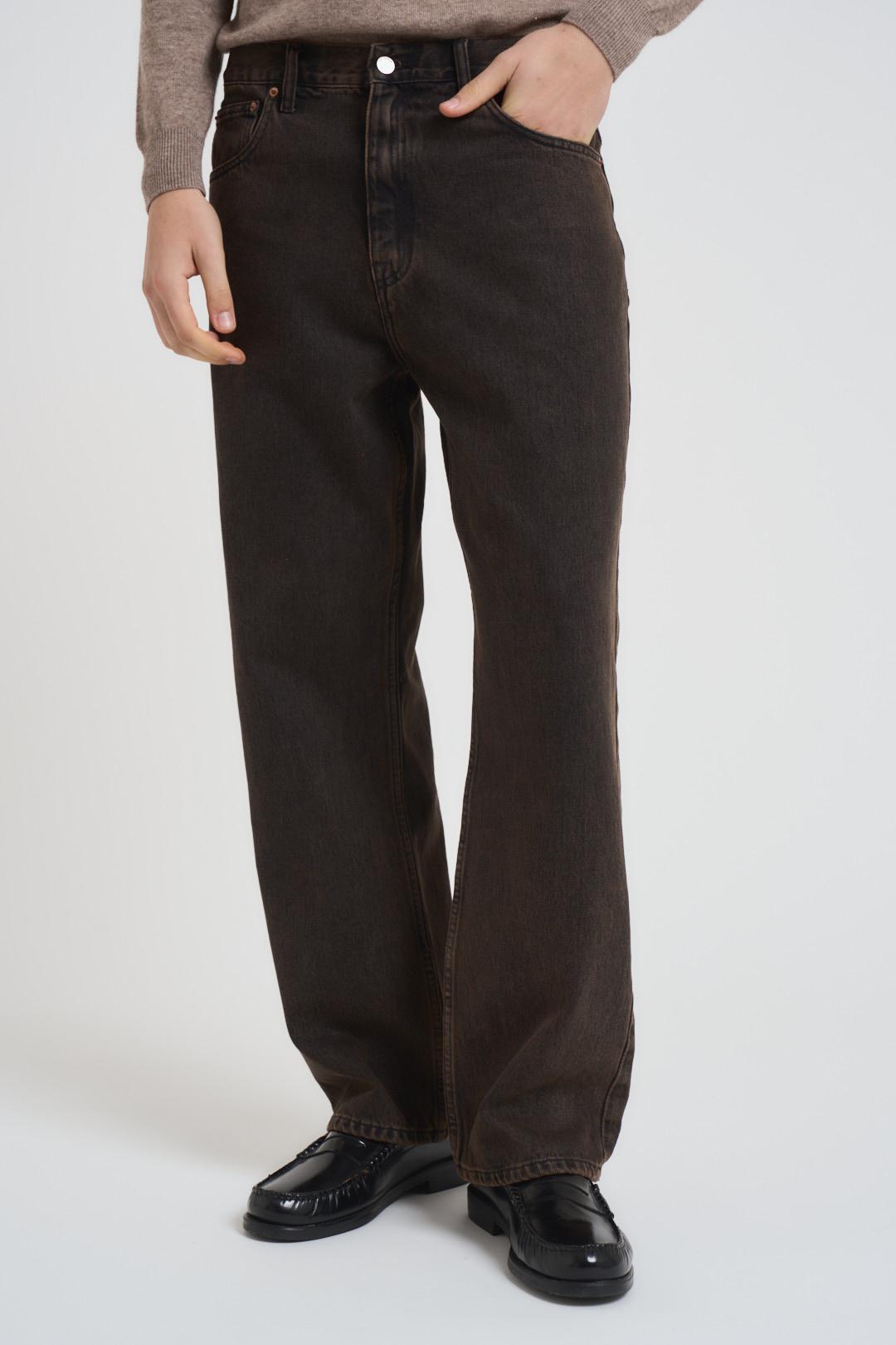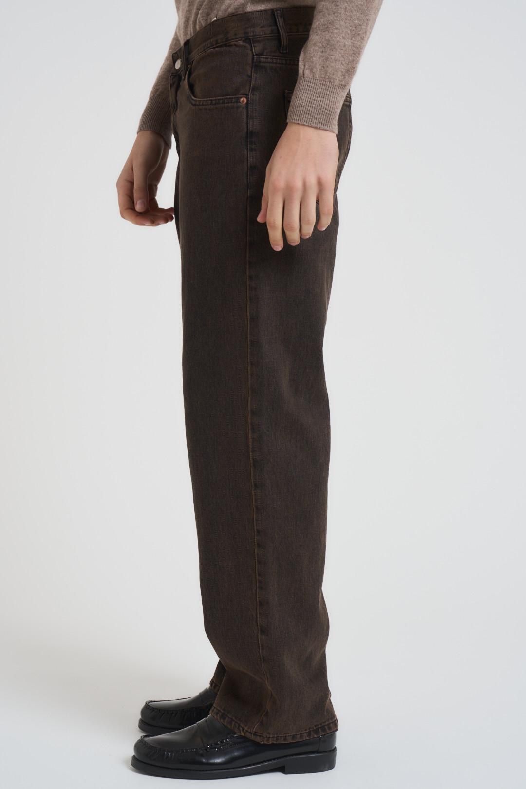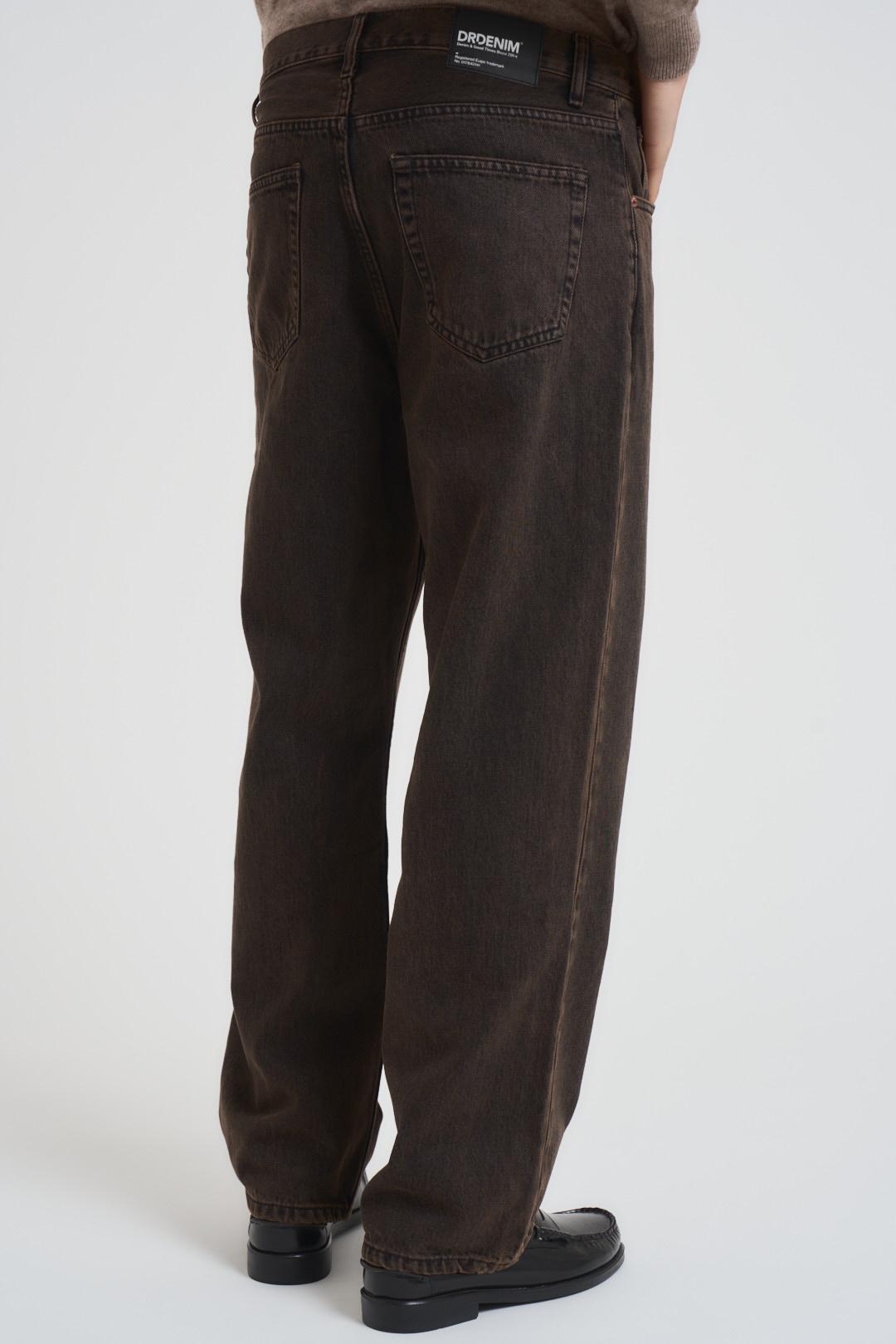 DRDENIM Jeans uomo relaxed fit marrone. Modello con chiusura frontale con zip e bottone. Cinque tasche. Passanti in vita. Composizione: 100% Cotone. Il modello è alto 190 cm e indossa la taglia 33.