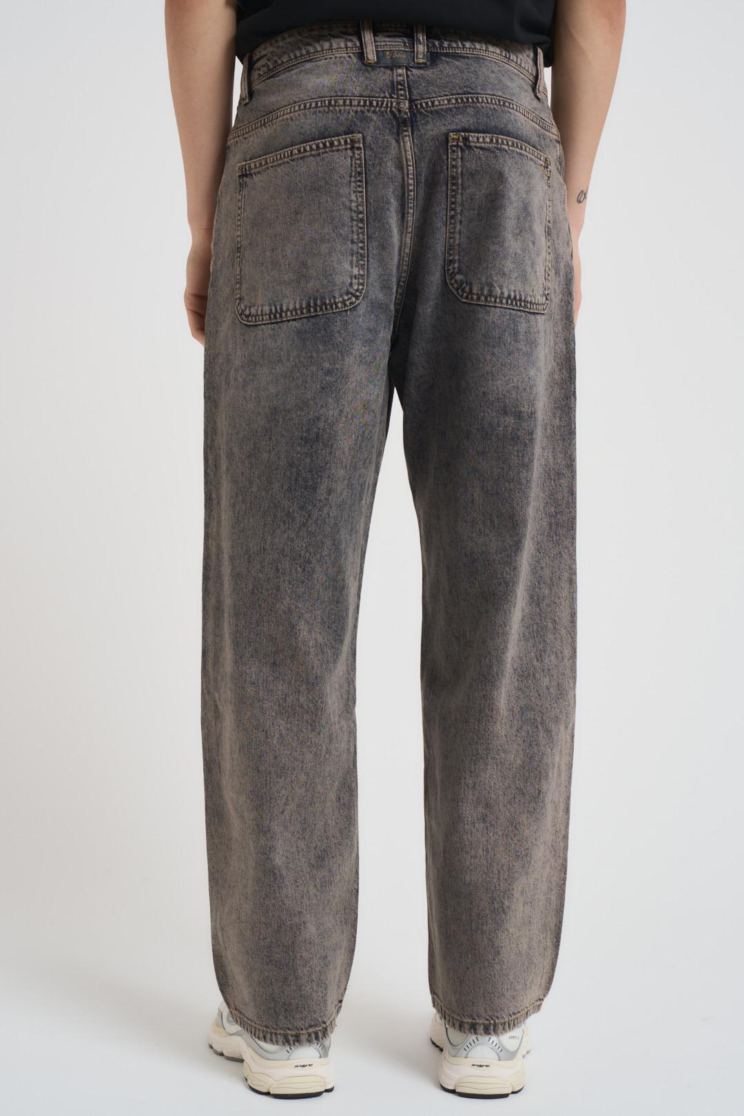 PONT DENIM Jeans uomo wide fit grigio. Modello a gamba larga. Chiusura frontale con zip e bottone. Cinque tasche. Tasche posteriori applicate. Composizione: 100% cotone. Il modello è alto 190cm e indossa la taglia 33.