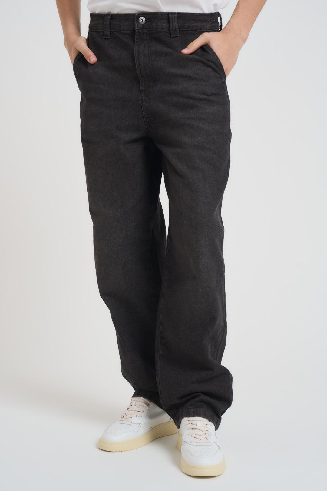 DICKIES Jeans uomo wide leg grigio scuro. Modello con chiusura con zip e bottone. Tasche frontali oblique. Tasche applicate posteriori arrotondate. Etichetta Dickies ricamata dietro. Passanti in vita. Composizione: 100% Cotone. Il modello è alto 190 cm e indossa la taglia 33.