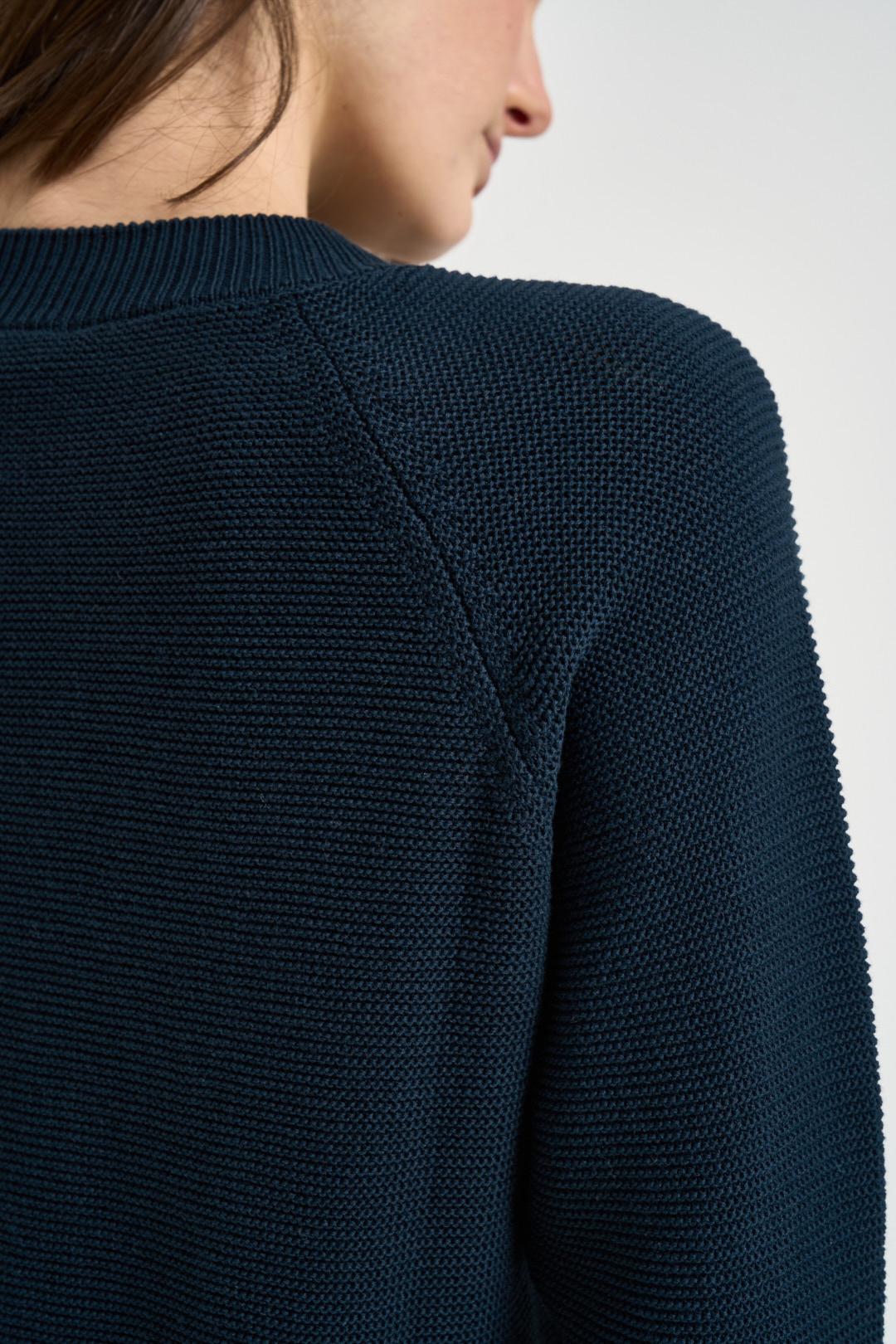 MAX MARA WEEKEND Maglia donna girocollo blu notte. Modello girocollo realizzato in maglia a punto rasato con texture leggermente strutturata. Vestibilità regolare con maniche lunghe raglan. Collo, polsi e fondo rifiniti a coste per una maggiore definizione del capo. Composizione: 100% Cotone. La modella è alta 176 cm e indossa la taglia S.