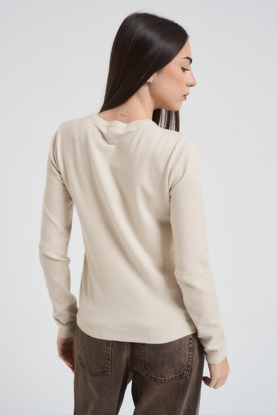 INCLOTH Maglia donna girocollo panna. Modello slim fit. Orlo, collo e fondo manica a costine. Composizione: 100% viscosa. La modella è alta 172 cm e indossa la taglia S/M.