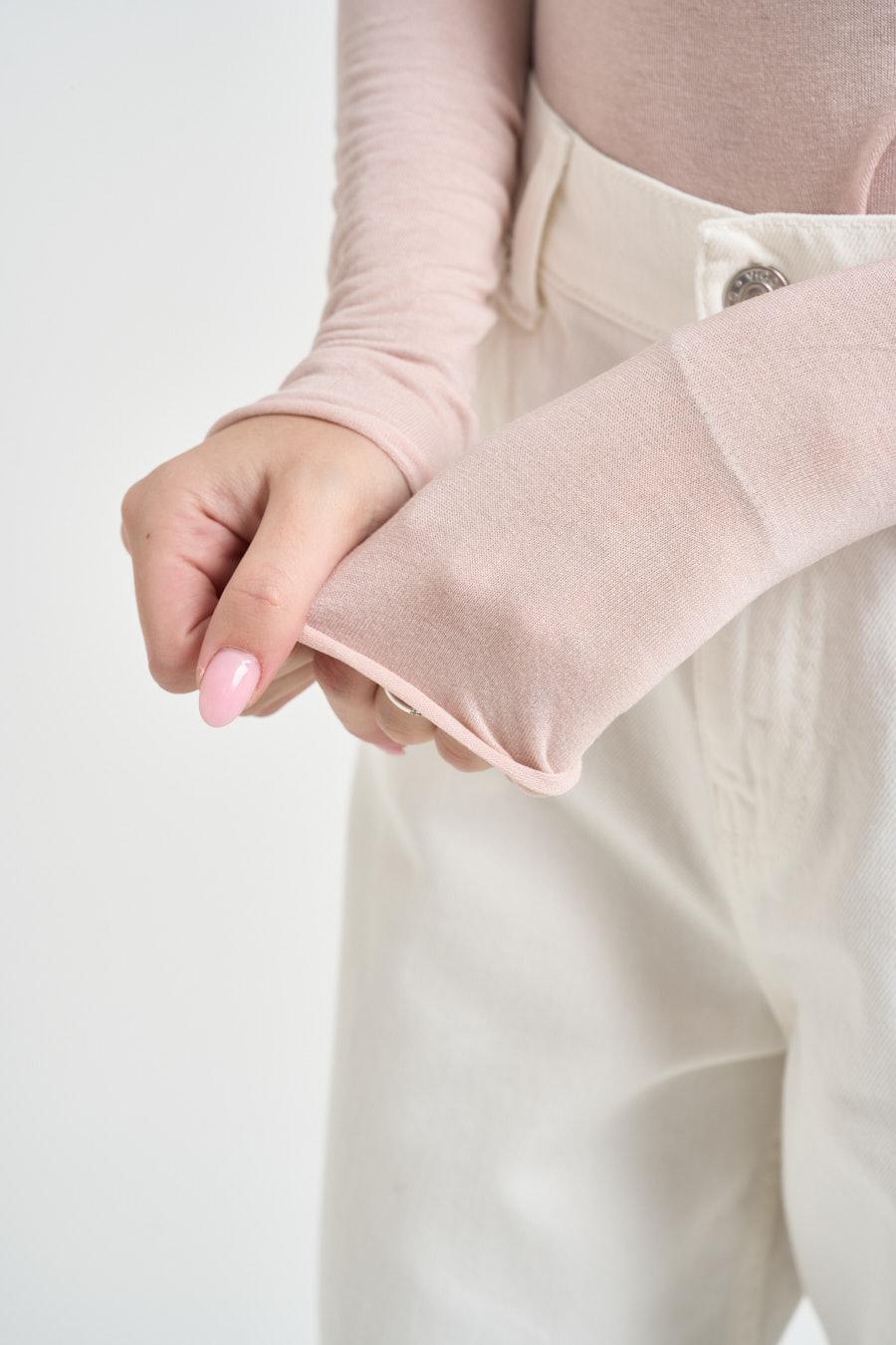 SOUVENIR CLUBBING Maglia donna semitrasparente rosa. Modello girocollo e maniche lunge. Composizione: 87% viscosa 8%seta 5%elastane. La modella è alta 172cm e indossa la taglia unica.