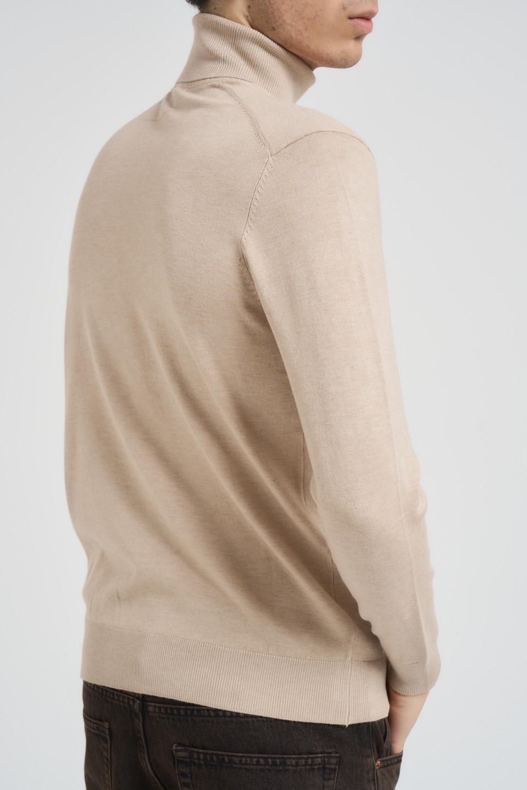 MARKUP Maglia uomo collo alto beige. Modello slim fit. Manica lunga. Collo, fondo manica e orlo con lavorazione a costine. Targhetta logo applicata nel lato sinistro. Composizione: 80% viscosa 20% nylon. Il modello è alto 190 cm e indossa la taglia L.