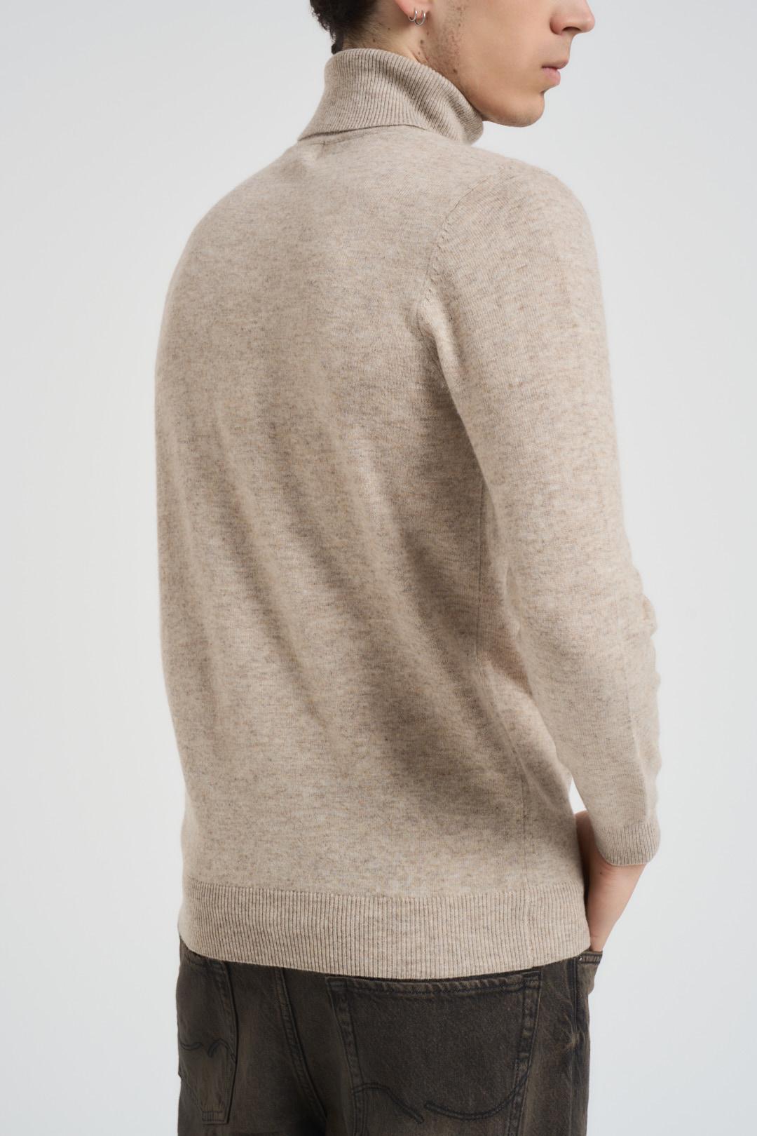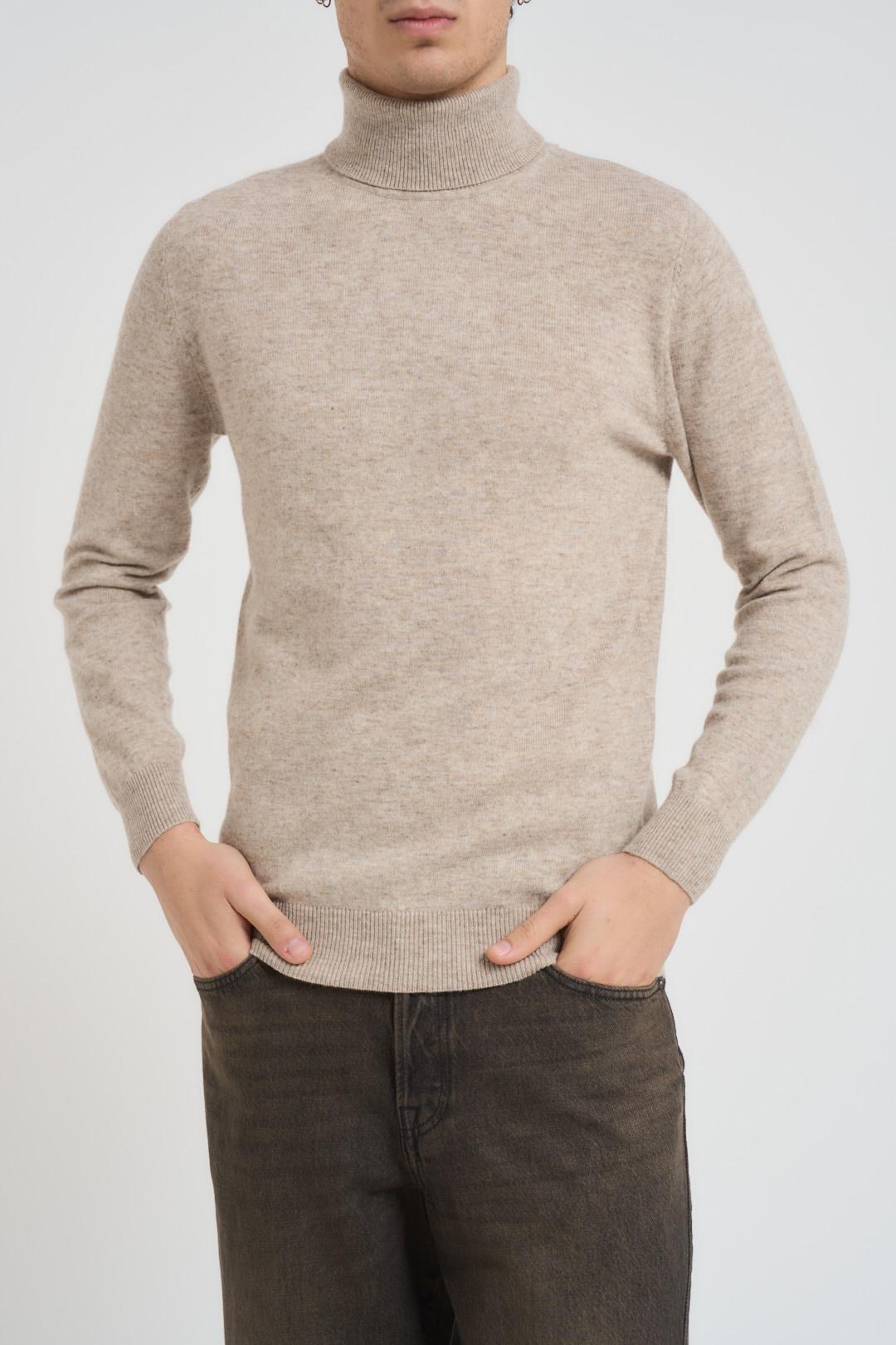 VITTORIO FERRIERI Maglia uomo collo alto beige. Modello slim fit. Manica lunga. Collo, polsino e orlo a costine. Composizione: lana e acrilico. Il modello è alto 190 cm e indossa la taglia L.