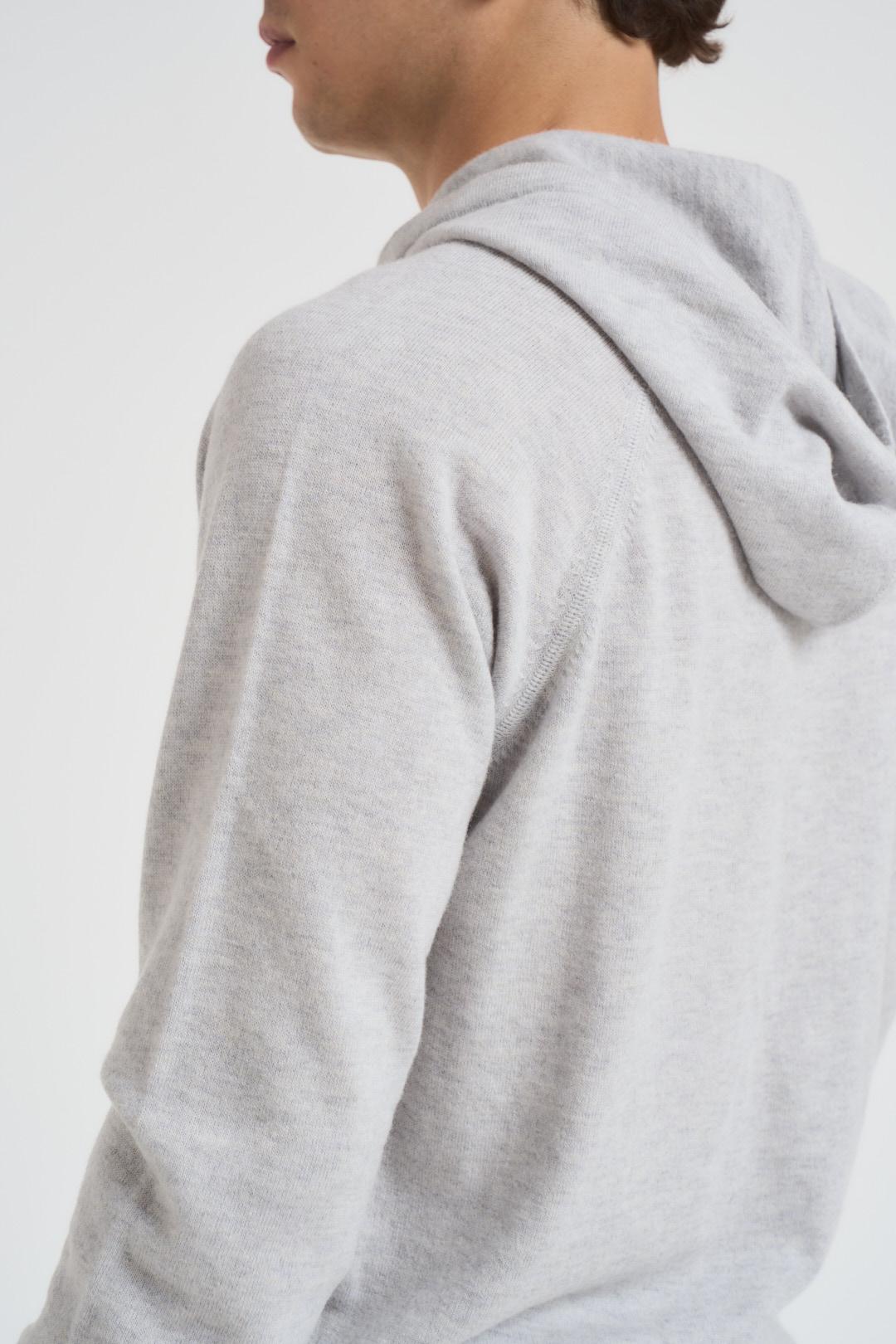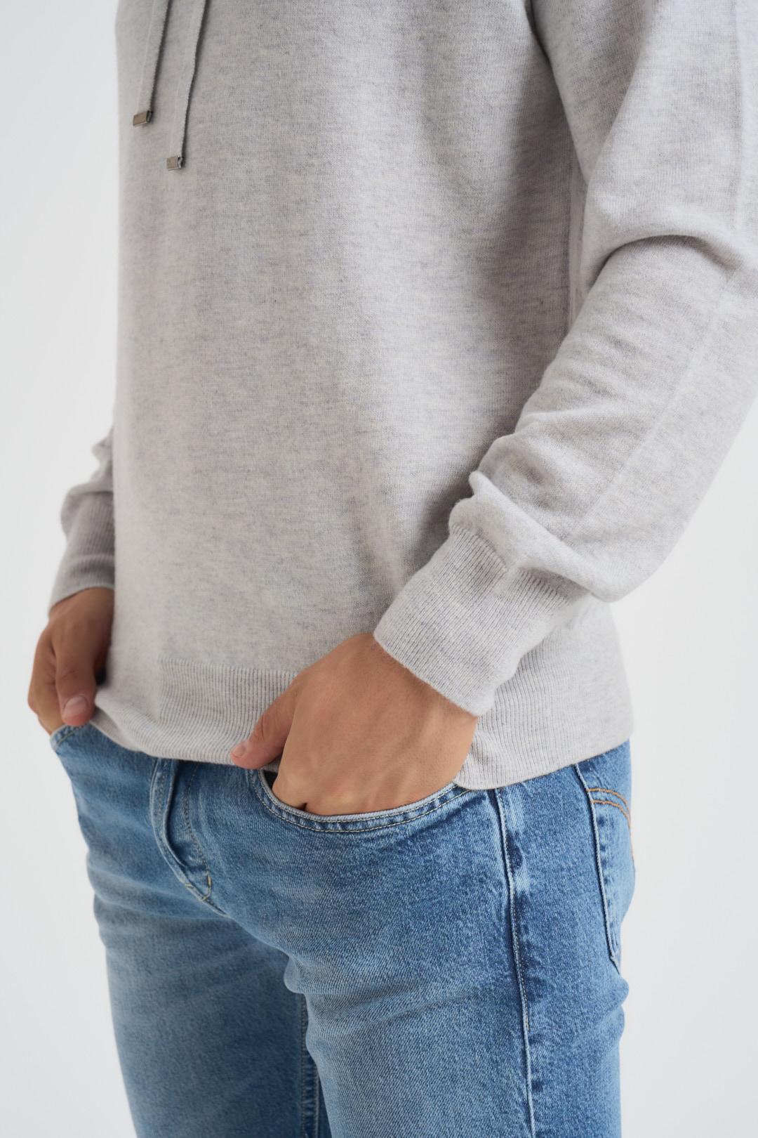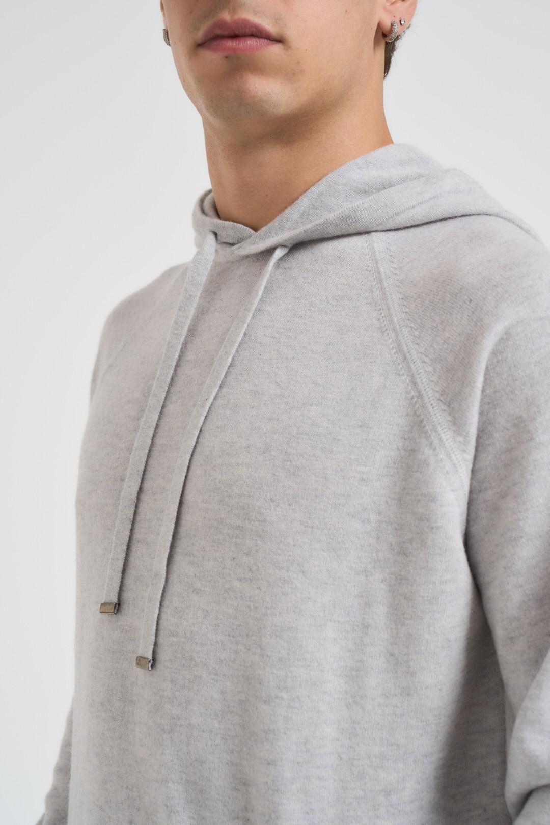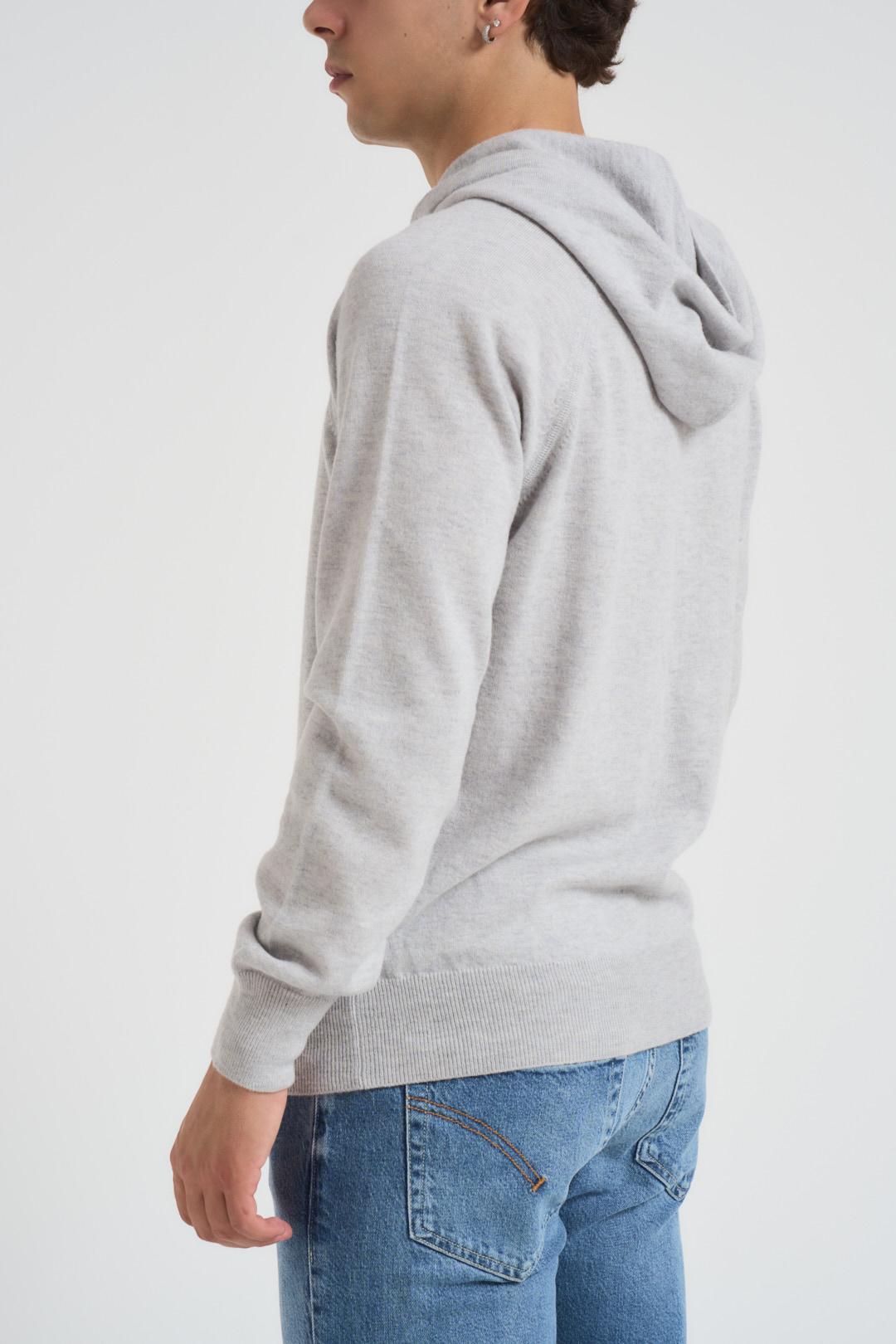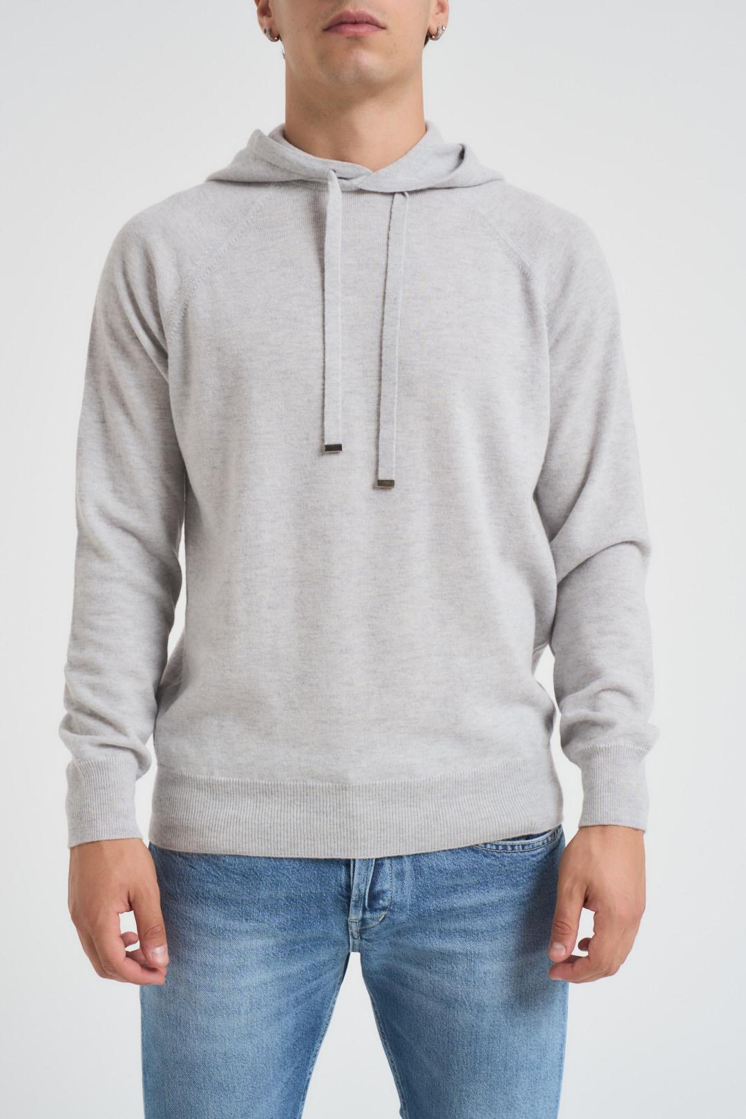 KANGRA Maglia uomo con cappuccio. Felpa in lana, polso e fondo a costine. Colore: grigio. Vestibilità regular. Il modello è alto 185cm e indossa la tg 48.