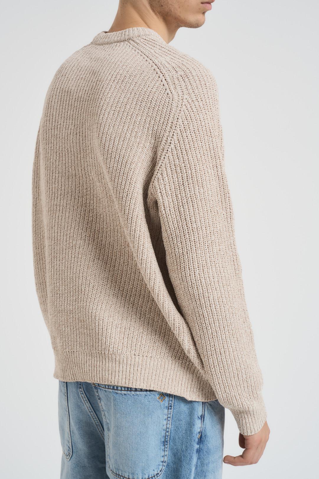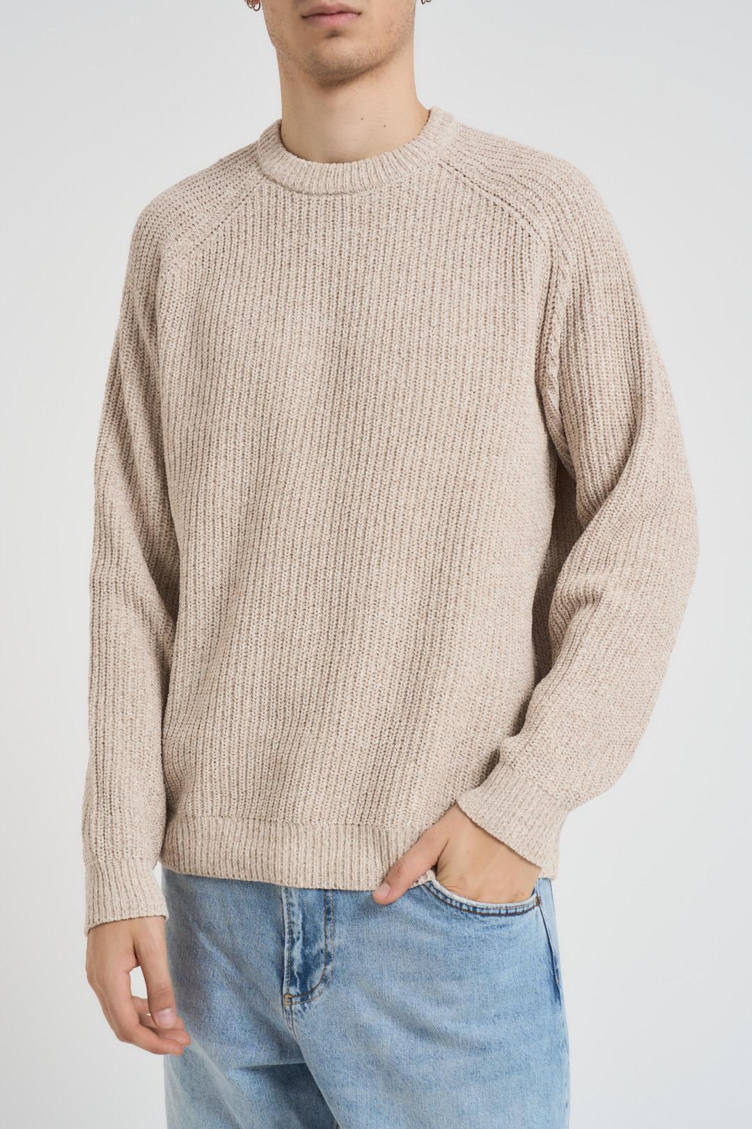 ONLY&SONS Maglia uomo girocollo a costine beige. Modello in ciniglia, dettagli a costine, spalla scesa. Composizione: 80%Poliestere 20%Nylon. Il modello è alto 190cm e indossa la taglia L.