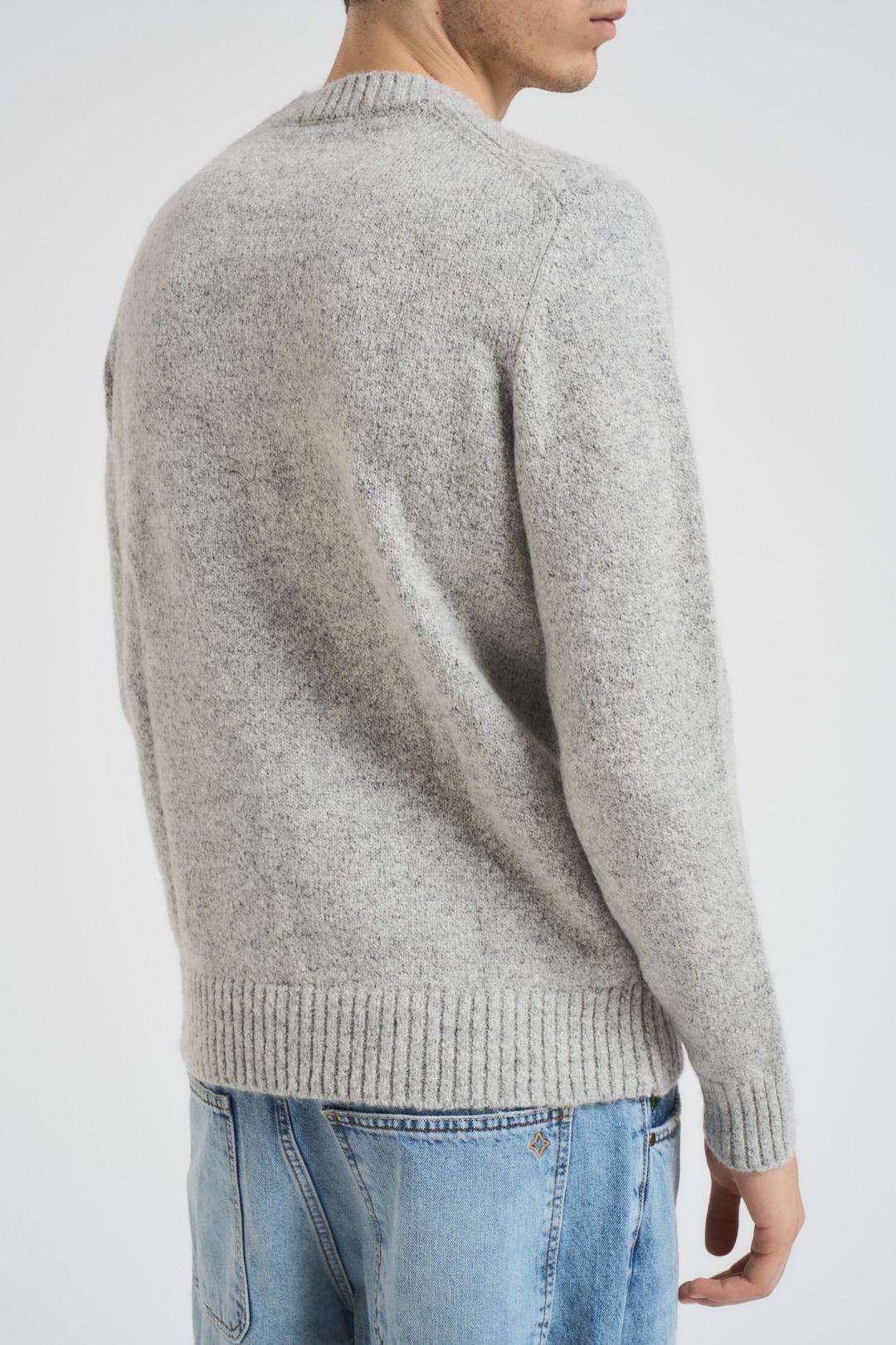 MARKUP Maglia uomo girocollo a rombi grigio chiaro. Modello con dettagli a costine, regula fit. Composizione: misto poliestere e viscosa. Il modello è alto 190cm e indossa la taglia L.