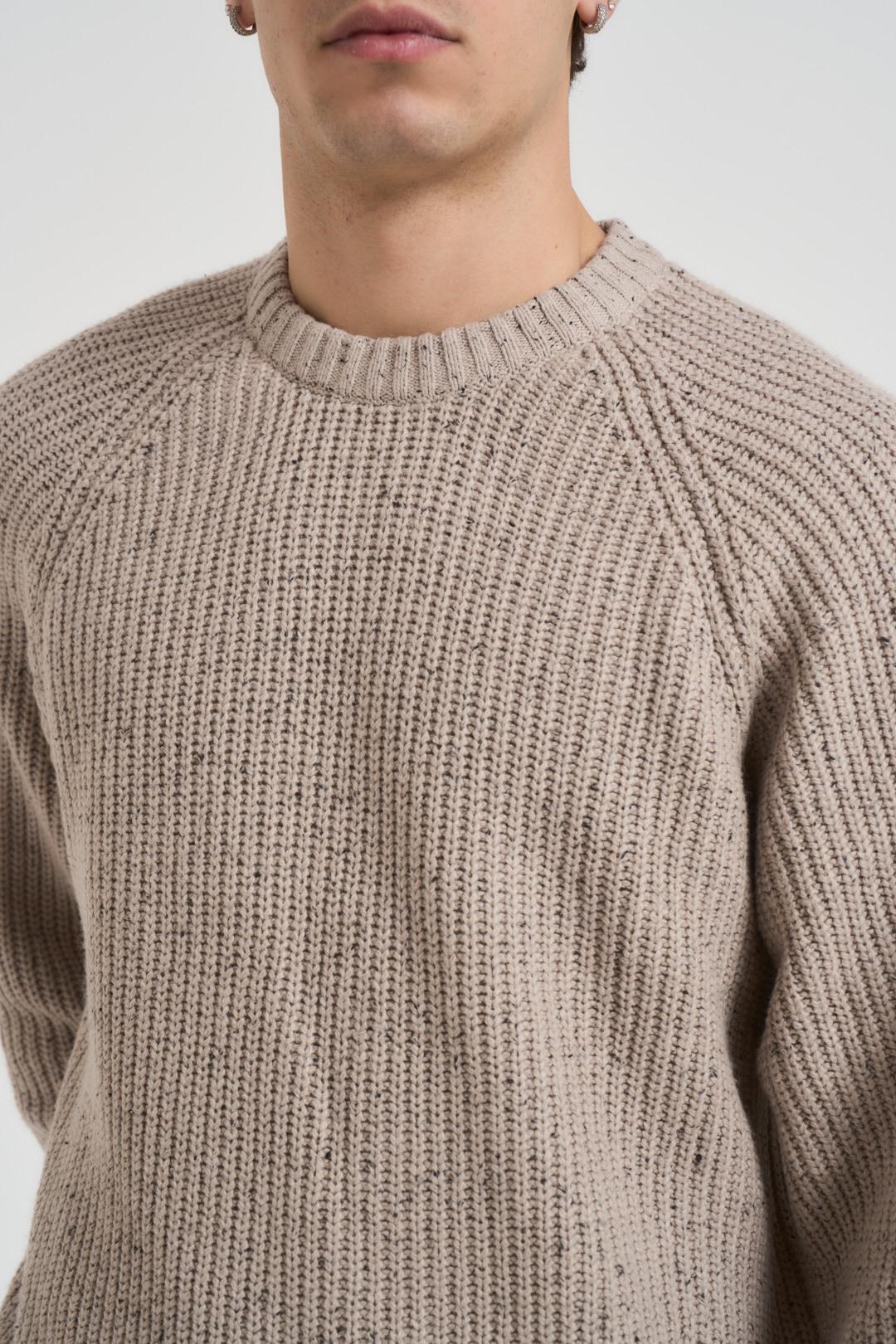ONLY & SONS Maglia uomo girocollo beige. Modello regular fit. Sale e pepe. Manica lunga. Composizione: 100% lana. Il modello è alto 190 cm e indossa la taglia L.