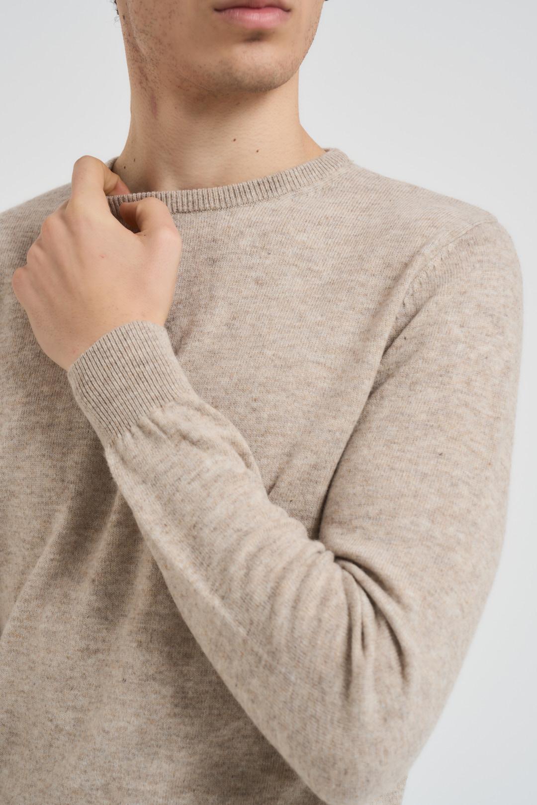 VITTORIO FERRIERI Maglia uomo girocollo beige. Modello slim fit. Manica lunga. Polso, orlo e girocollo con lavorazione a costine. Composizione: misto lana. Il modello è alto 190 cm e indossa la taglia L.