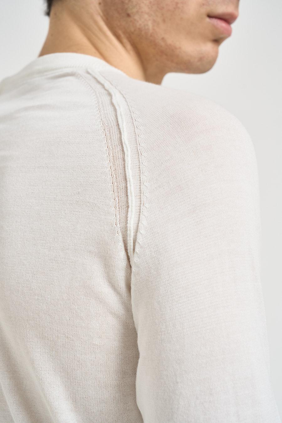 OVERD Maglia uomo girocollo bianca. Modello slim fit. Manica raglan. Dettagli a costine. Composizione: 100% cotone. Il modello è alto 190 cm e indossa la taglia L.