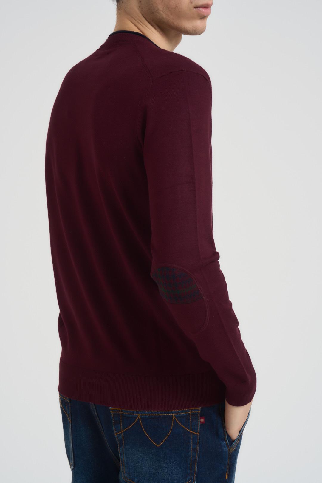 MARKUP Maglia uomo girocollo bordeaux. Modello a manica lunga con toppe in viscosa sui gomiti, dettagli a costine. Composizione: 80% Viscosa, 20% Nylon. Il modello è alto 190cm e indossa la taglia L.