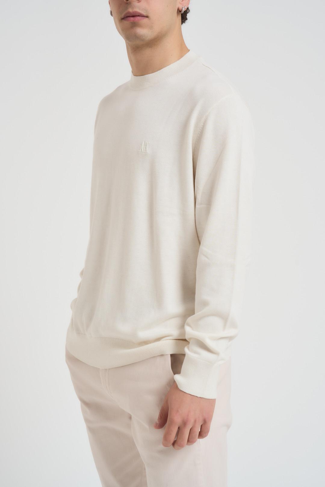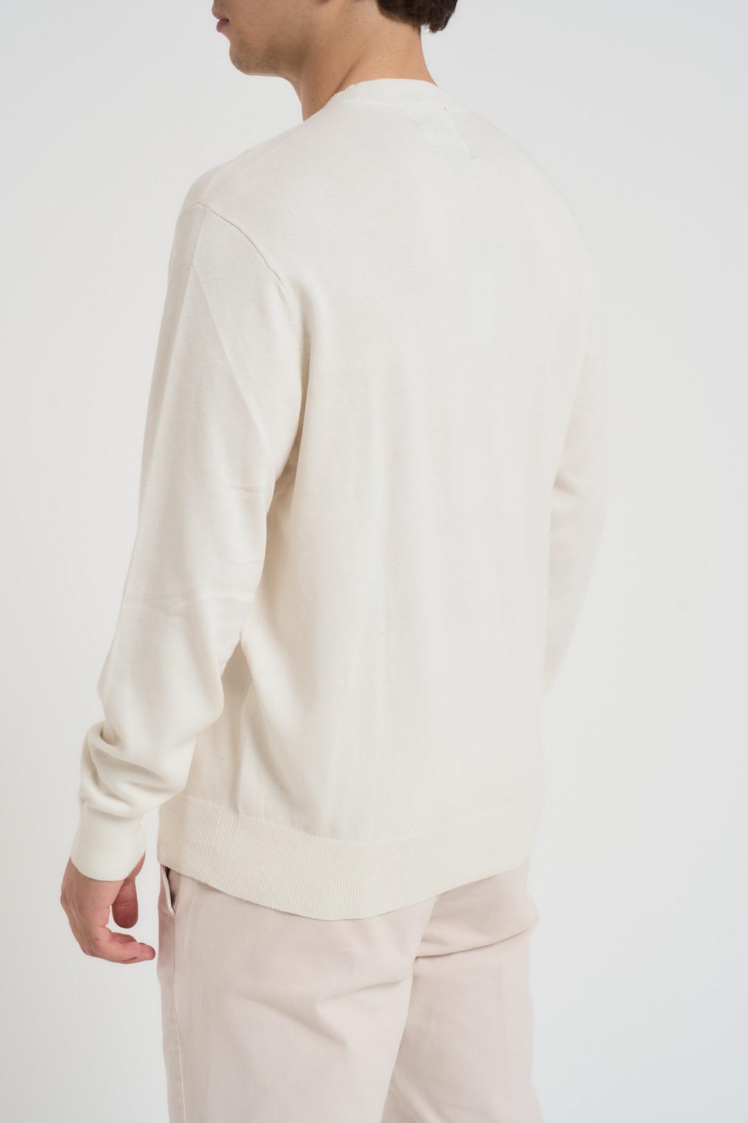 ARMANI EXCHANGE Maglia uomo girocollo burro. Modello regular fit. Manica lunga. Collo, polsi e orlo a costine. Logo sul petto. Composizione: 53% cotone, 42% viscosa, 5% seta. Il modello è alto 190 cm e indossa la taglia L.