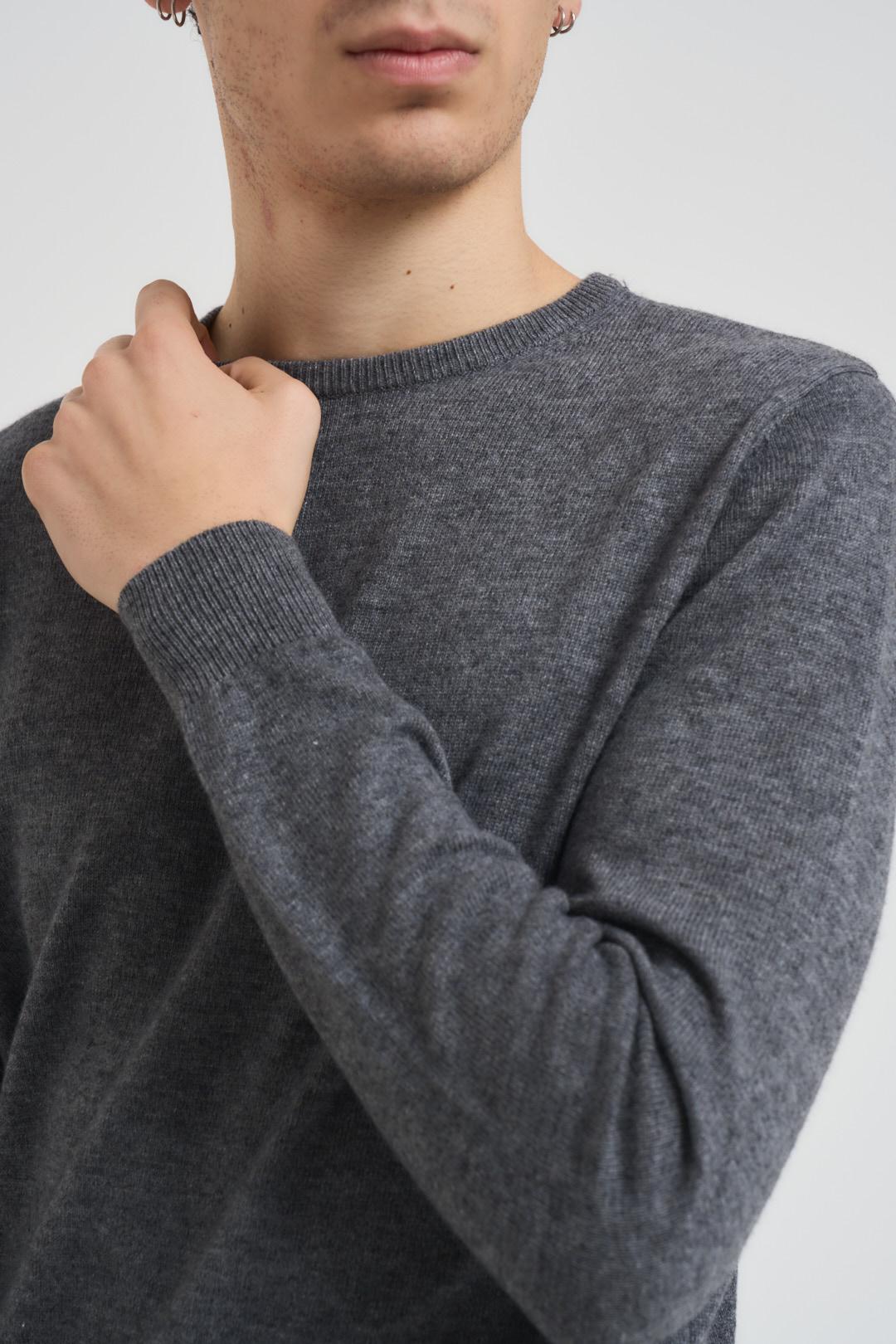 VITTORIO FERRIERI Maglia uomo girocollo grigio scuro. Modello slim fit. Manica lunga. Polso, orlo e girocollo con lavorazione a costine. Composizione: misto lana. Il modello è alto 190 cm e indossa la taglia L.