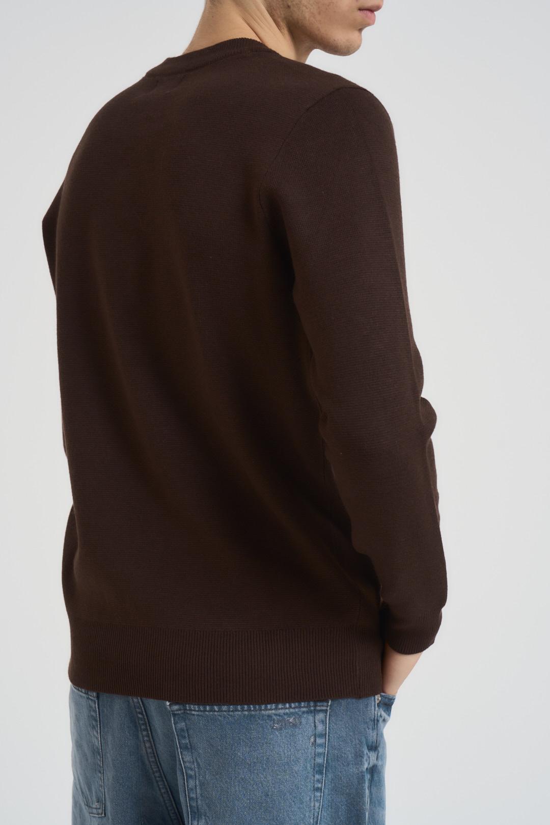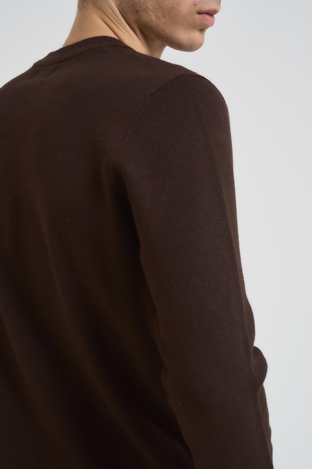 BERNA Maglia uomo girocollo marrone. Modello regular fit. Manica lunga. Collo, polso e orlo con lavorazione a costine. Composizione: 70% Viscosa, 30% Poliammide. Il modello è alto 190 cm e indossa la taglia L.