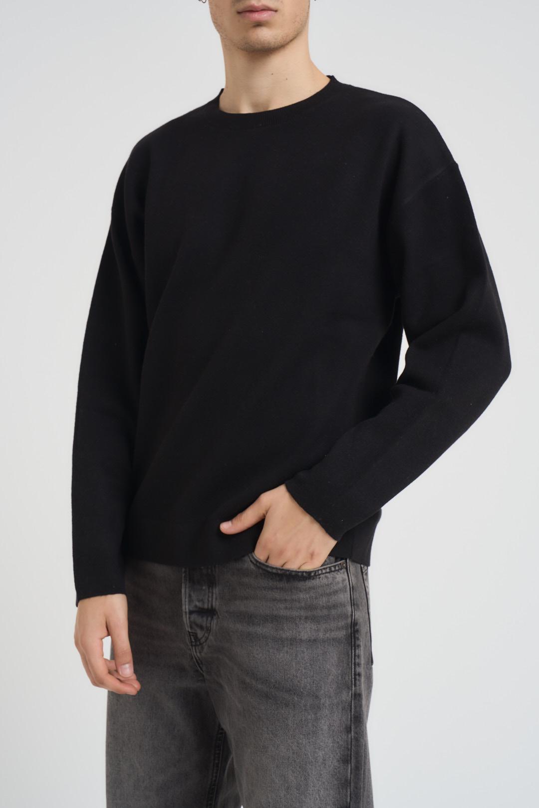 JACK&JONES Maglia uomo girocollo nera. Modello manica lunga con dettagli a costine, boxy fit, spalla scesa. Composizione: poliestere e acrilico. Il modello è alto 190cm e indossa la taglia L.