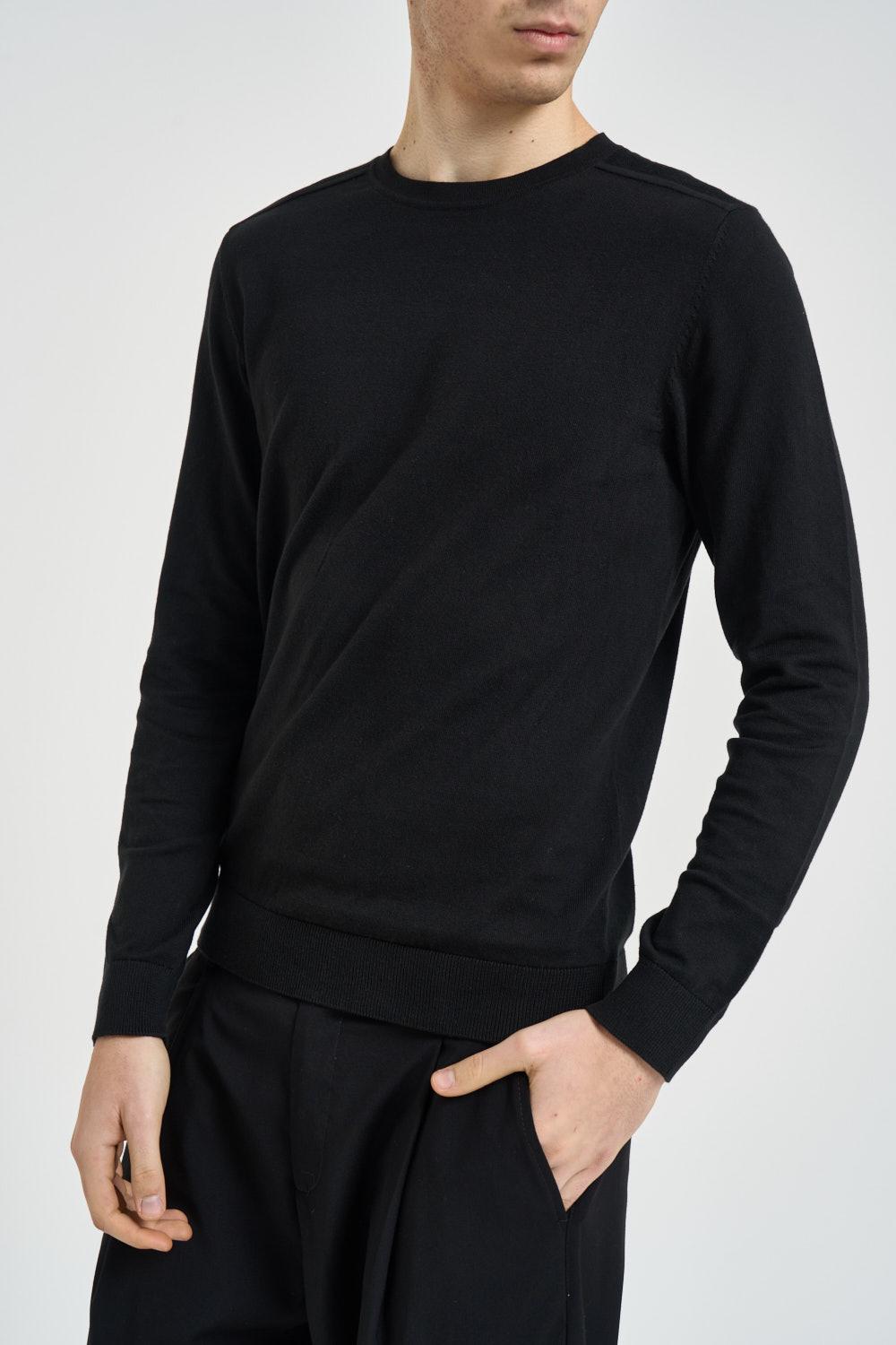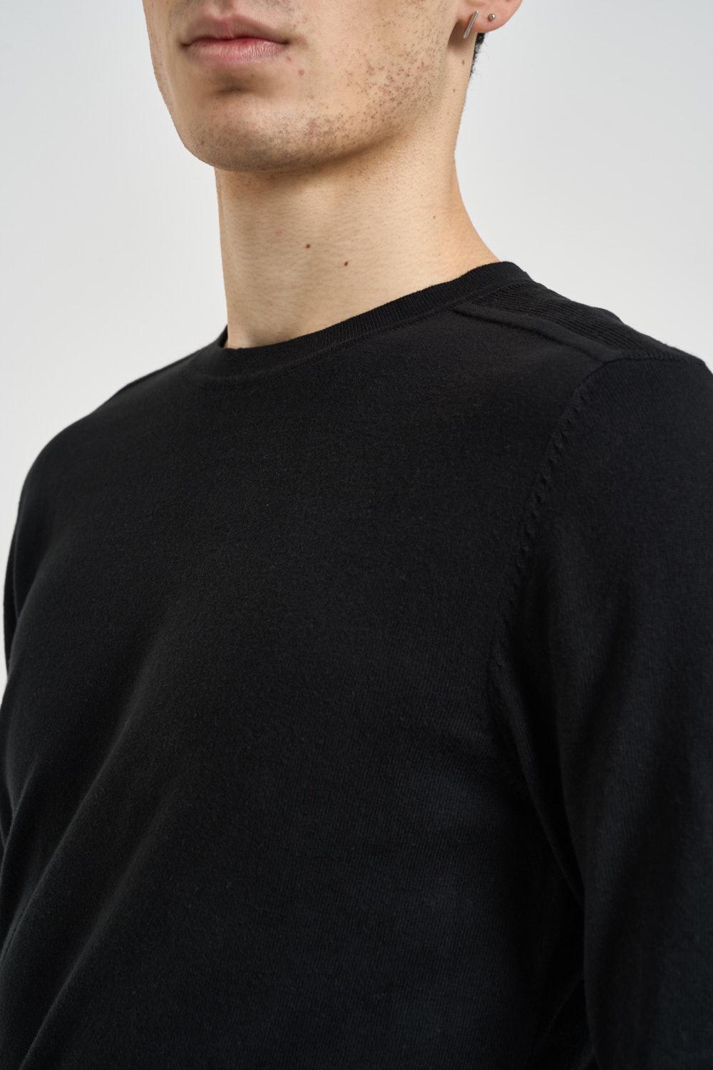 SELECTED Maglia uomo girocollo nera. Modello a manica lunga. Finiture a costine. Vestibilità regolare. Composizone: 100% cotone. Il modello è alto 190 cm e indossa la taglia L.