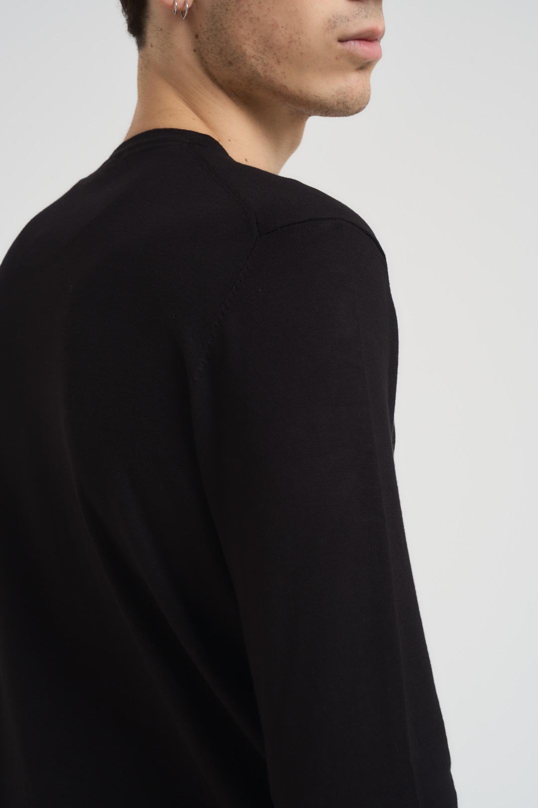 OVERD Maglia uomo girocollo nera. Modello regular fit con dettagli a costine, maglia extrafine. Composizione: viscosa, poliestere. Il modello è alto 190cm e indossa la taglia L.