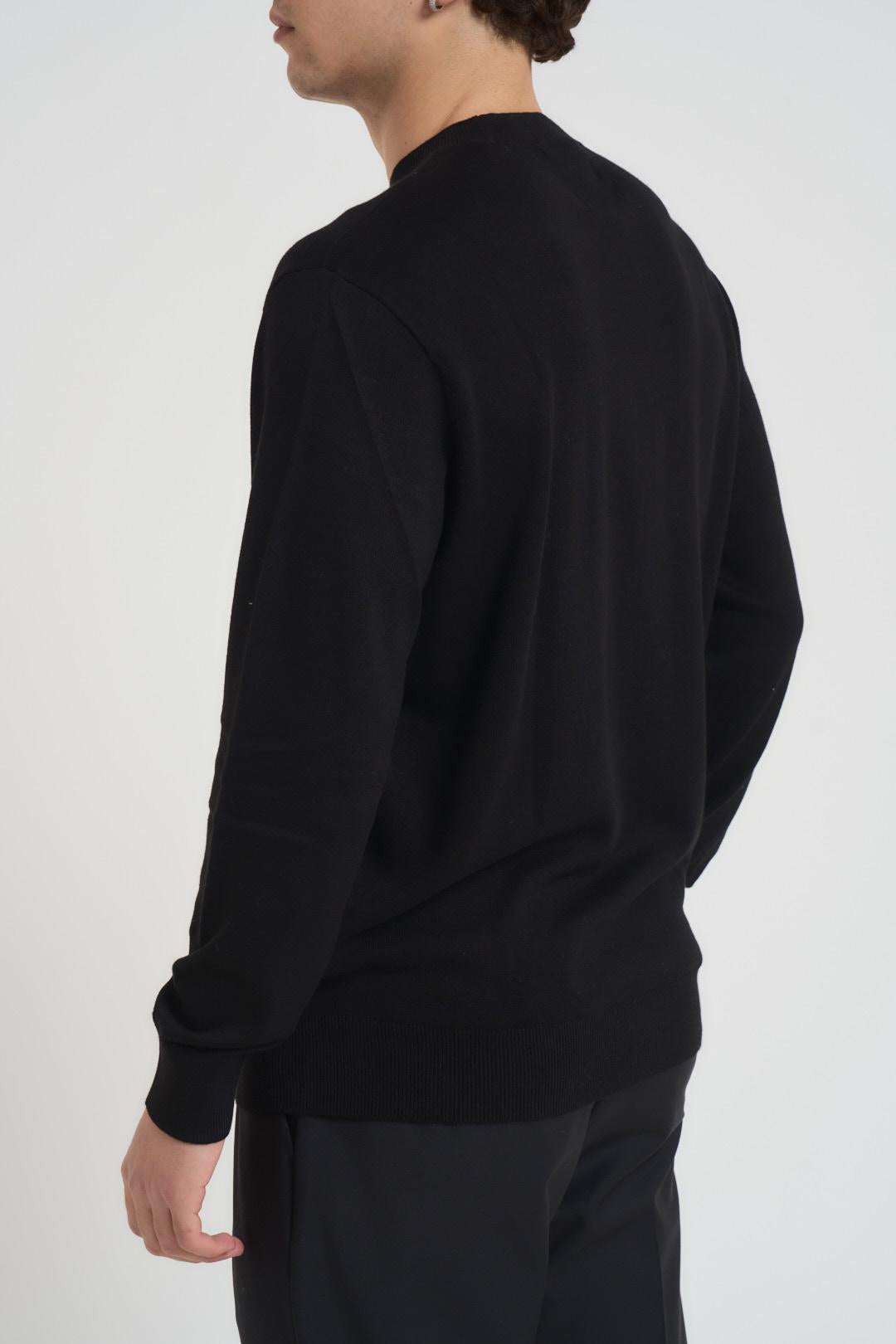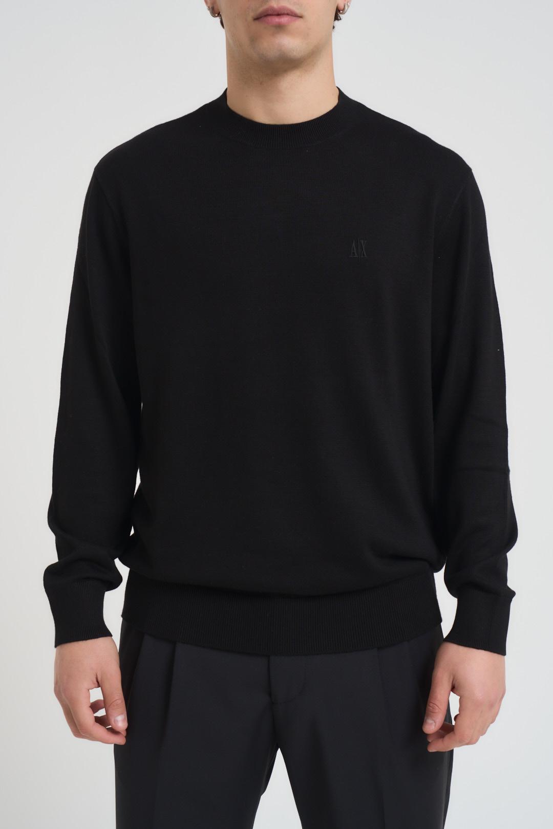 ARMANI EXCHANGE Maglia uomo girocollo nera. Modello regular fit. Manica lunga. Collo, polsi e orlo a costine. Logo sul petto. Composizione: 53% cotone, 42% viscosa, 5% seta. Il modello è alto 190 cm e indossa la taglia L.