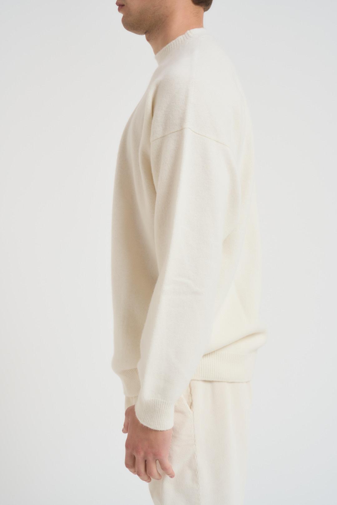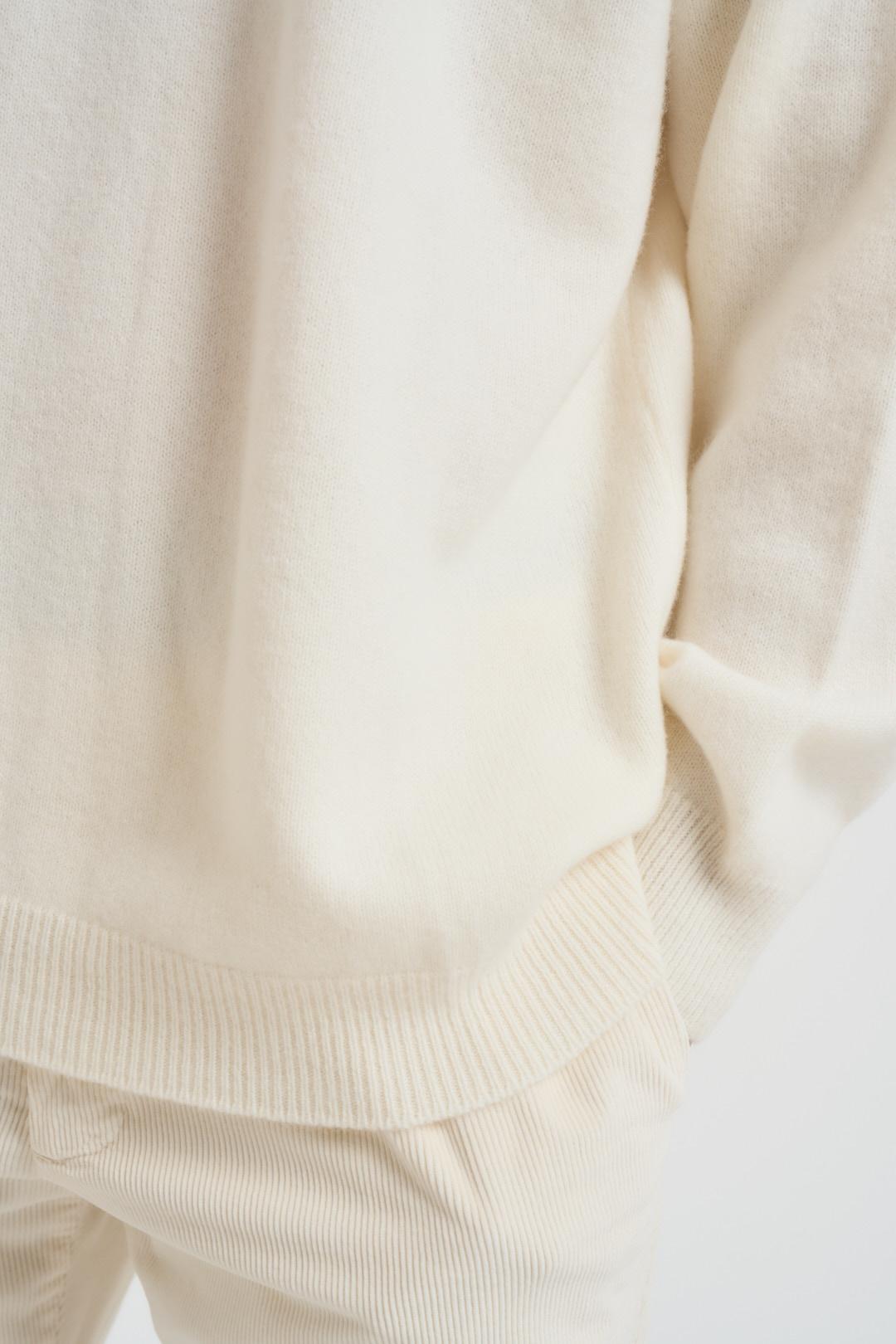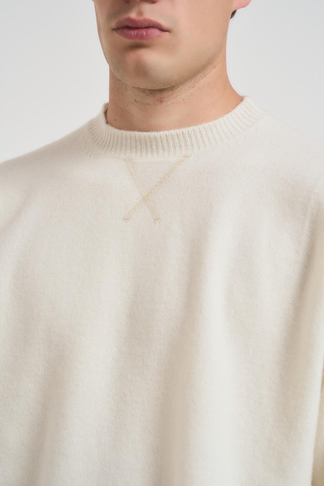 AMARANTO Maglia uomo girocollo panna. Modello regular fit. Dettaglio a contrasto sul collo e su fondo. Manica lunga. Collo, polsi e orlo a costine. Composizione: 100% lana. Il modello è alto 190 cm e indossa la taglia L.