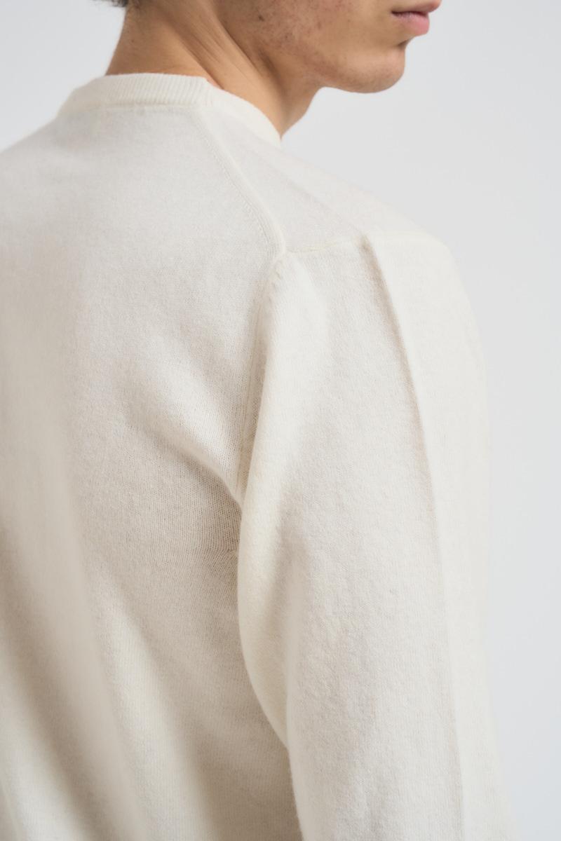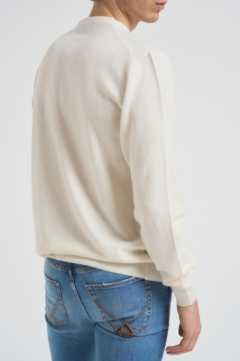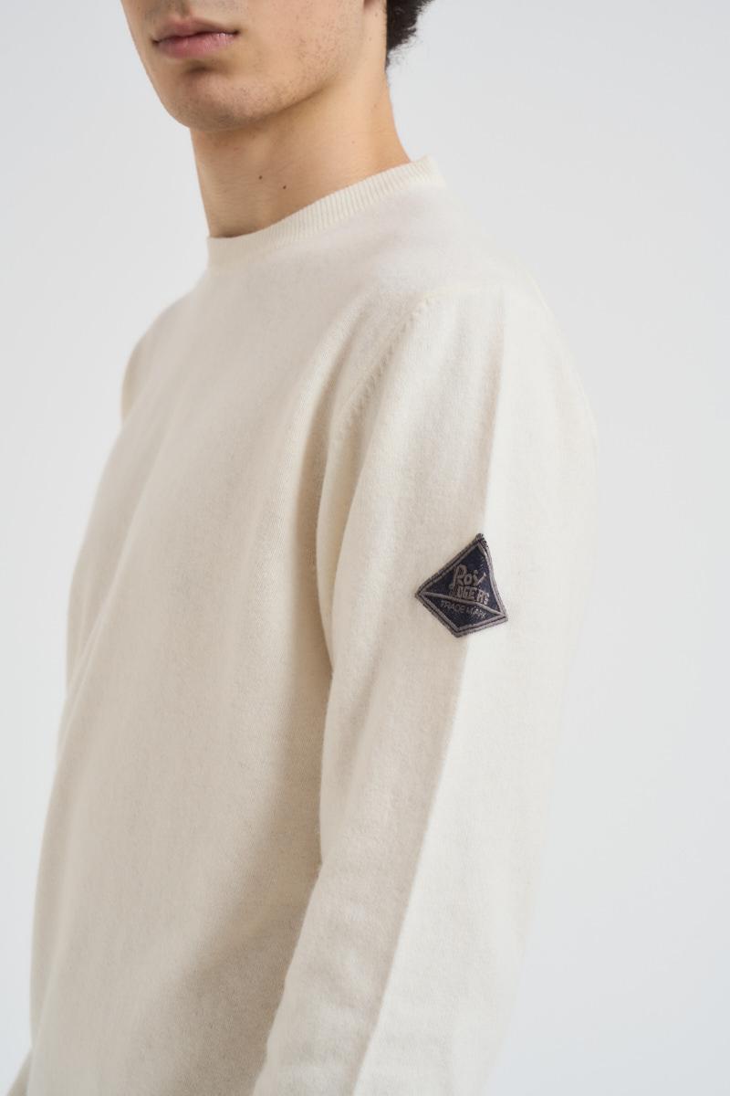 ROY ROGER'S Maglia uomo girocollo panna. Modello a manica lunga con orli a costine. Etichetta brand cucita sulla manica a sinistra. Composizione: 45% Lana 25% Poliammide 25% Viscosa. Il modello è alto 190 cm e indossa la taglia L.