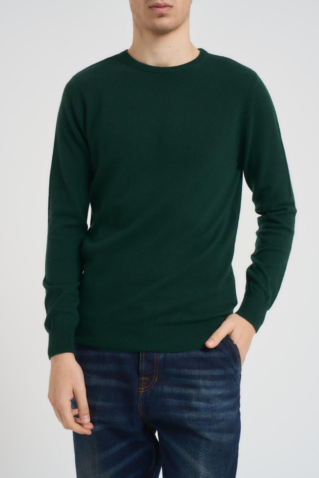 VITTORIO FERRIERI Maglia uomo girocollo verde. Modello slim fit. Manica lunga. Polso, orlo e girocollo con lavorazione a costine. Composizione: misto lana. Il modello è alto 190 cm e indossa la taglia L.