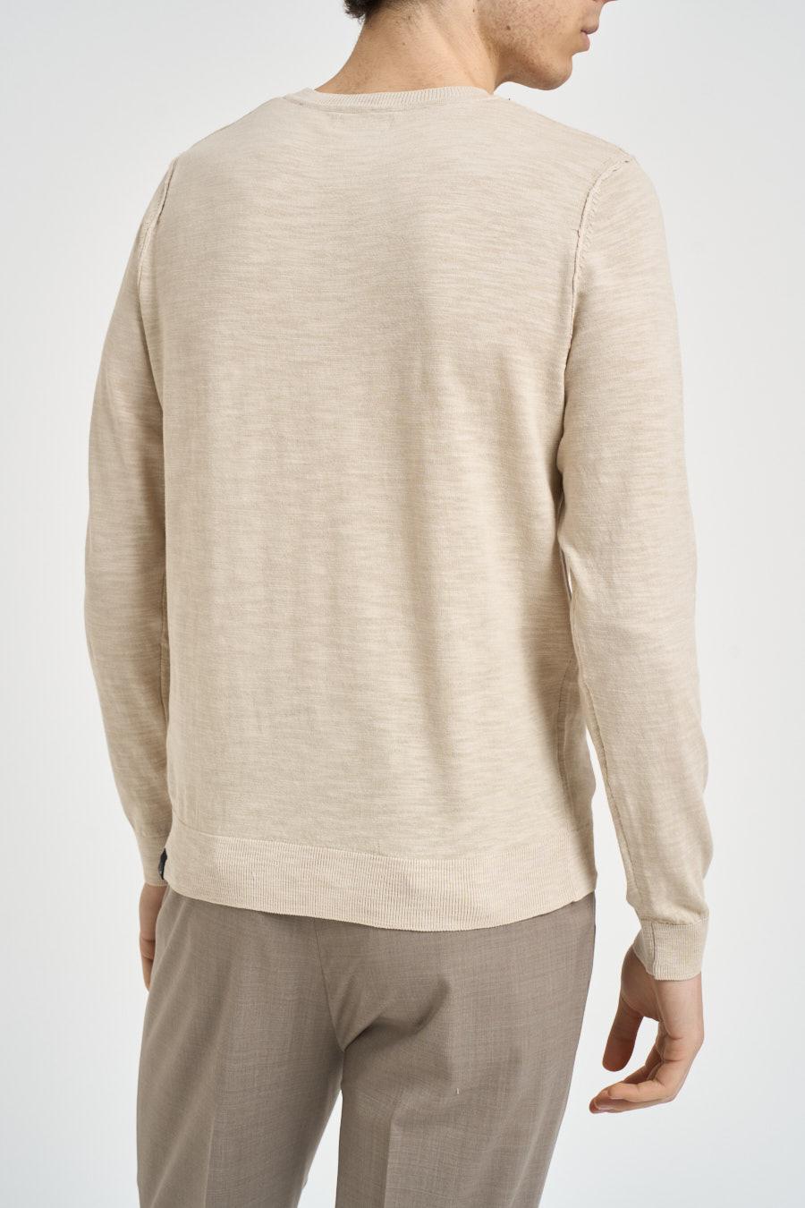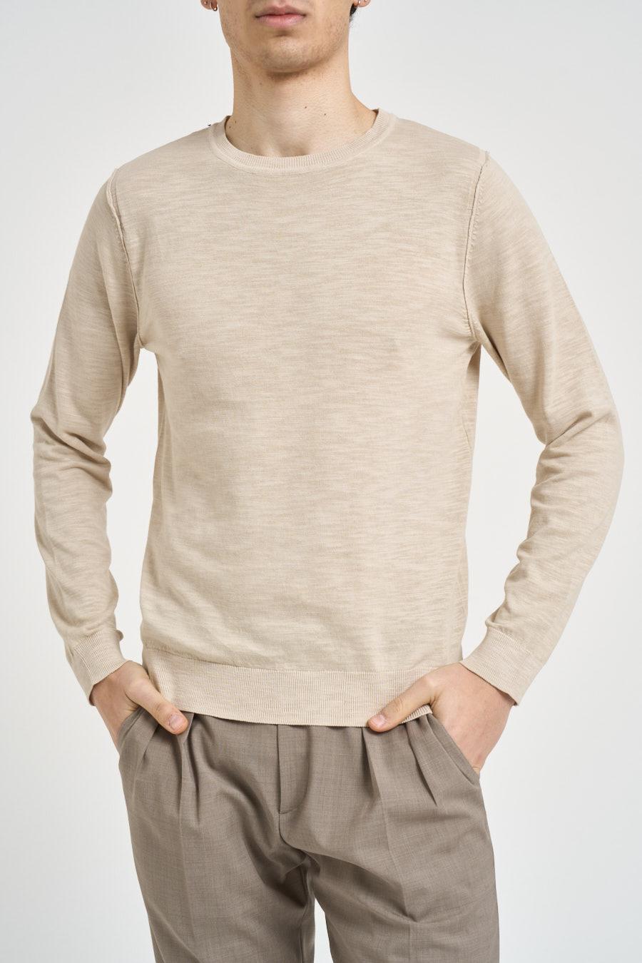 CENSURED Maglia uomo in maglia beige. Modello regular fit. Girocollo. Manica lunga. Dettagli a costine. Composizione: 100% cotone. Il modello è alto 190 cm e indossa la taglia L.