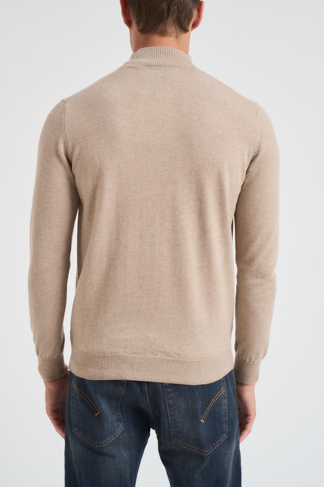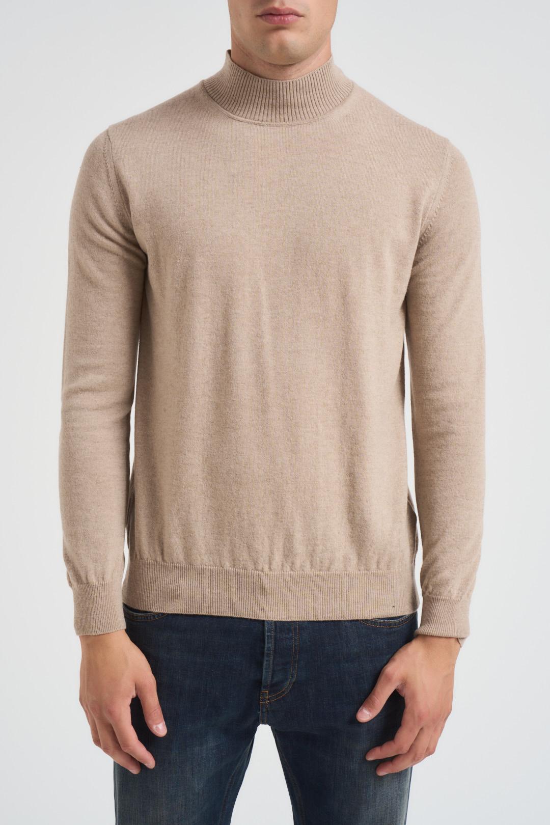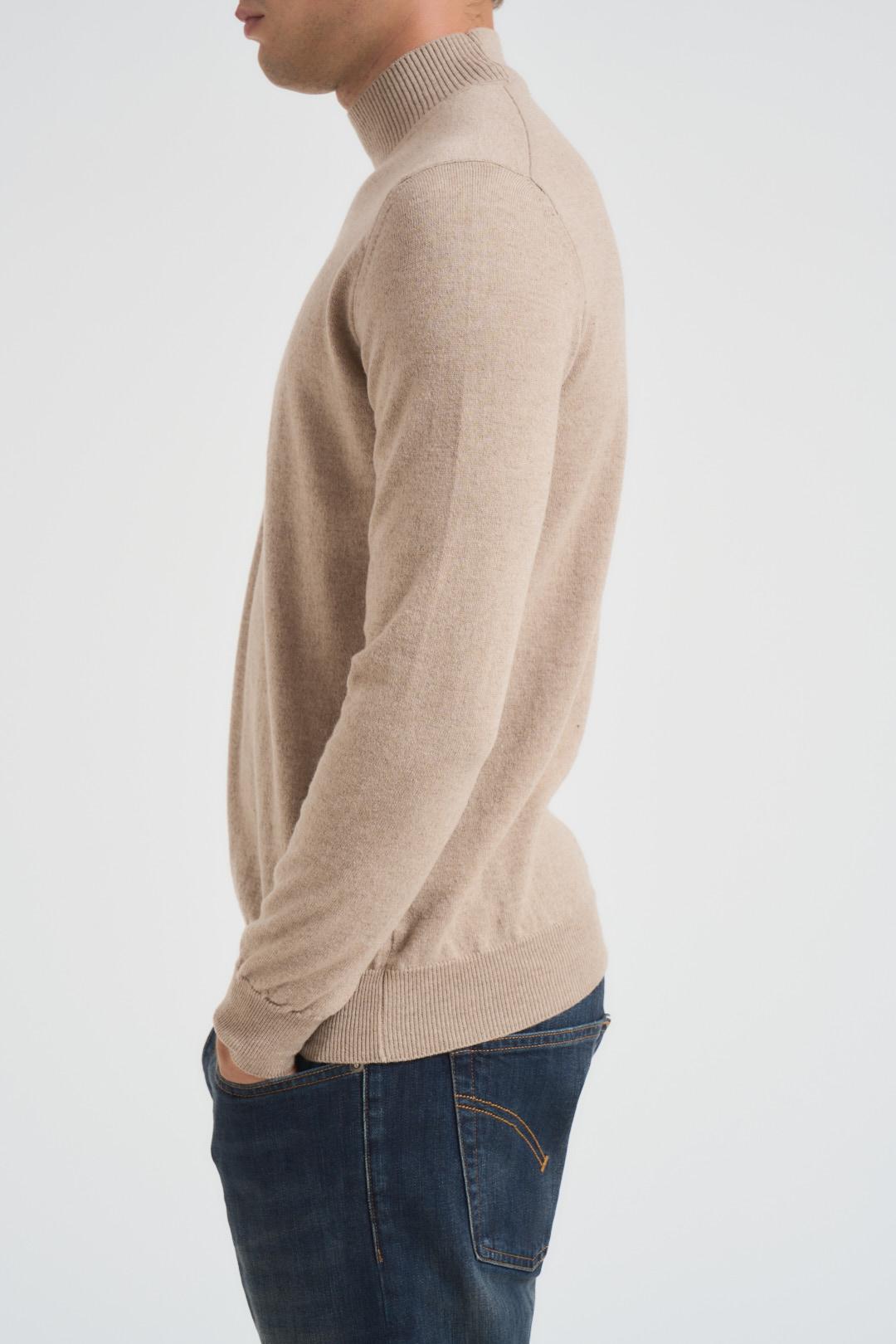 ALPHA STUDIO Maglia uomo mezzo collo beige. Modello in lana merinos. Collo, polsini e fondo a costine. Regular fit. Composizione: 100% Lana. Il modello è alto 190 cm e indossa la taglia 48.