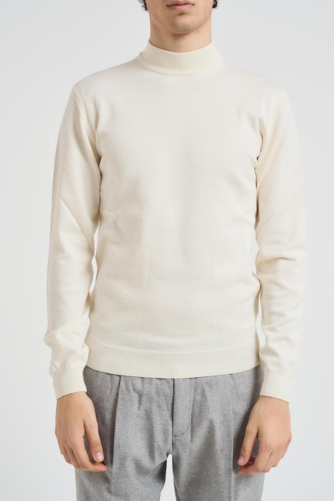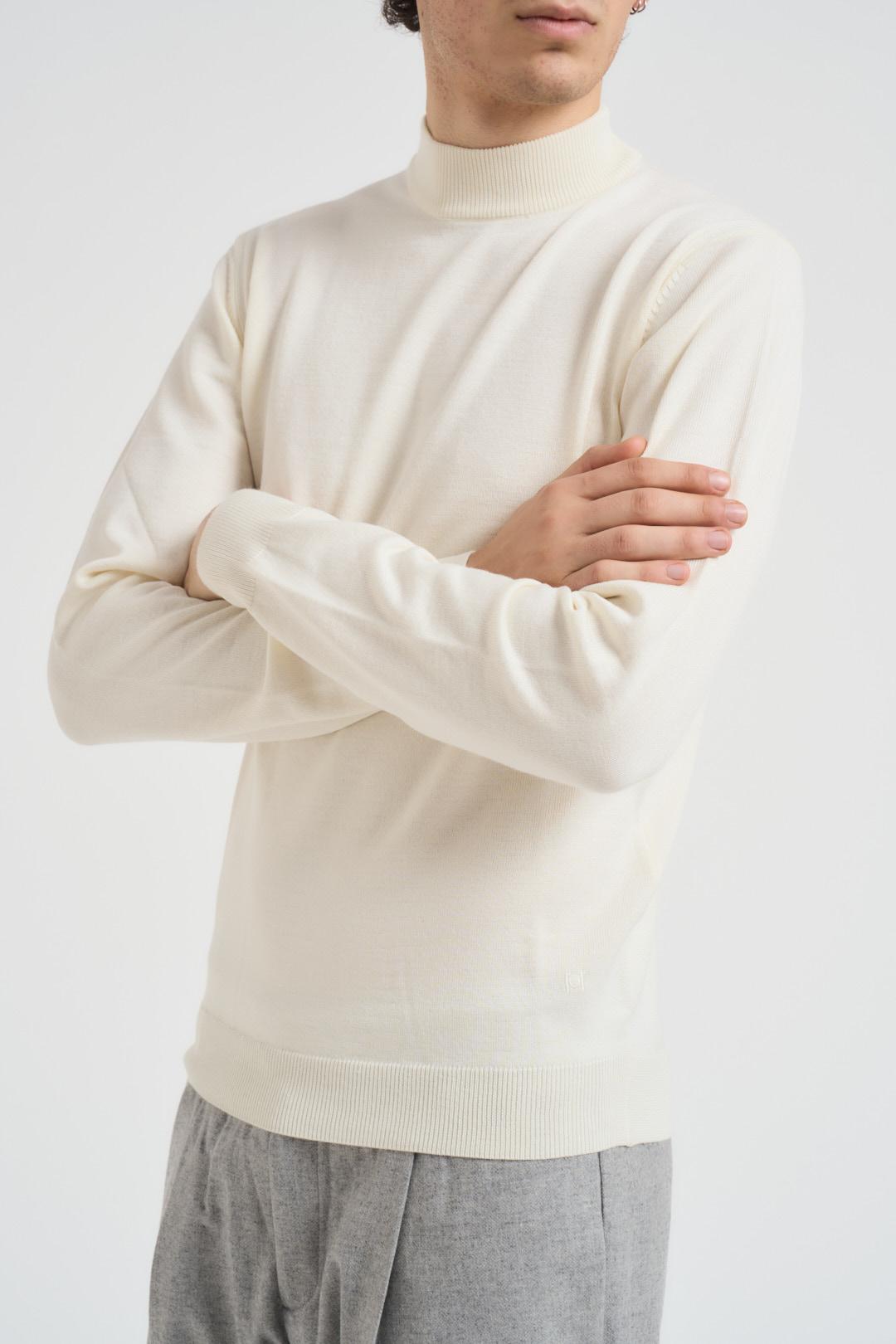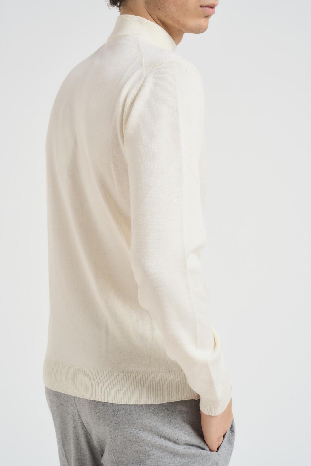 HAMAKI-HO MILANO Maglia uomo mezzo collo bianca. Modello a maniche lunghe. Collo, polsi e fondo a costine. Regular fit. Composizione: 70% Viscosa 30% Nylon. Il modello è alto 190 cm e indossa la taglia L.